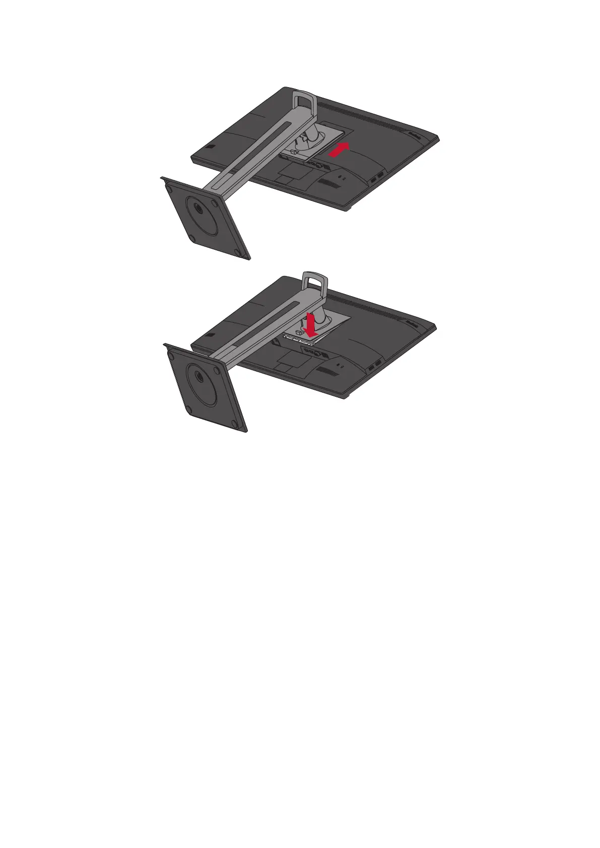4. Align and slide the upper hooks of the monitor stand into the stand mounng