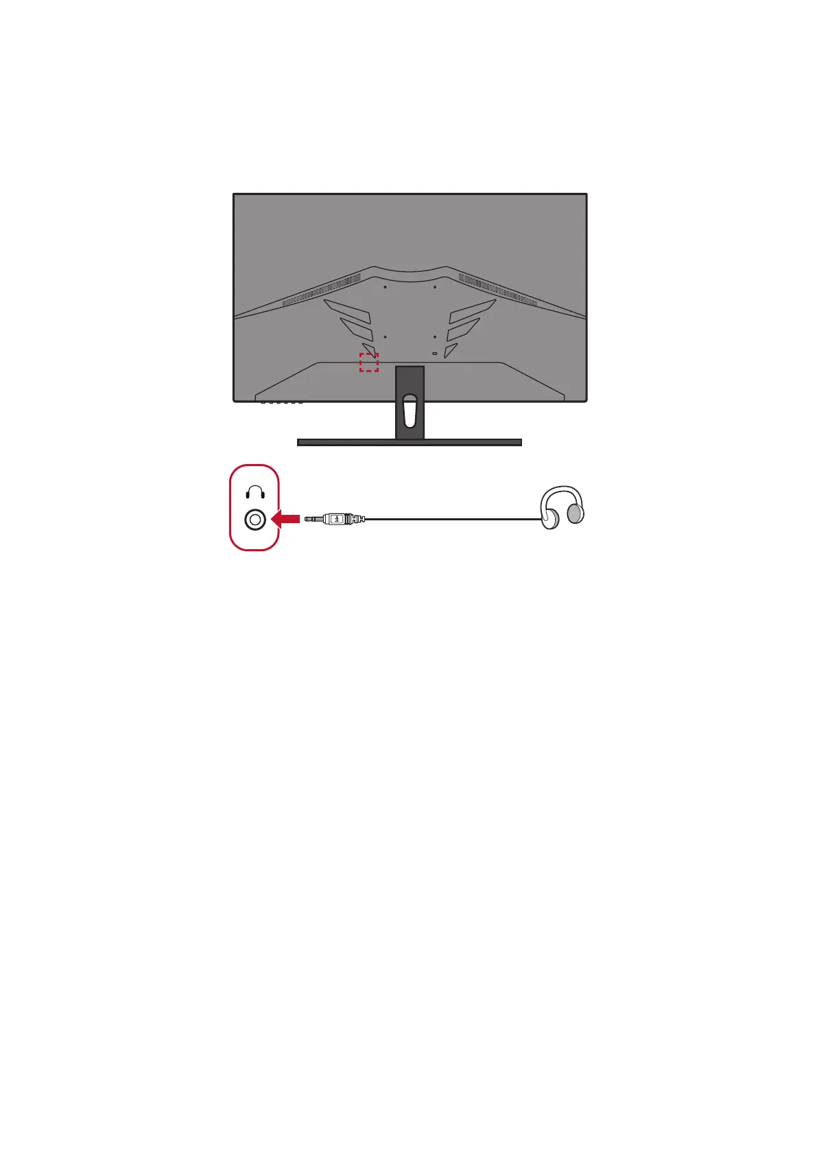 Plug the audio jack of the ear-/headphones into the Audio Out port of the monitor.