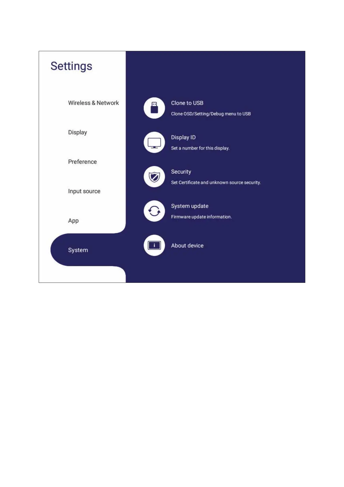 View and adjust Storage, Security, System Update, and About deviceƐĞƫŶŐƐ