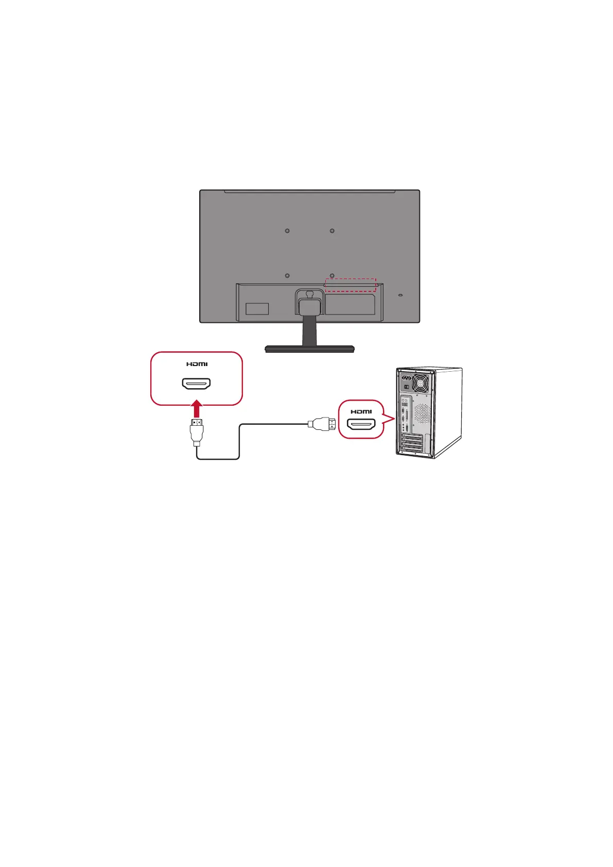 Connect one end of an HDMI cable to the HDMI port of your monitor. Then connect
