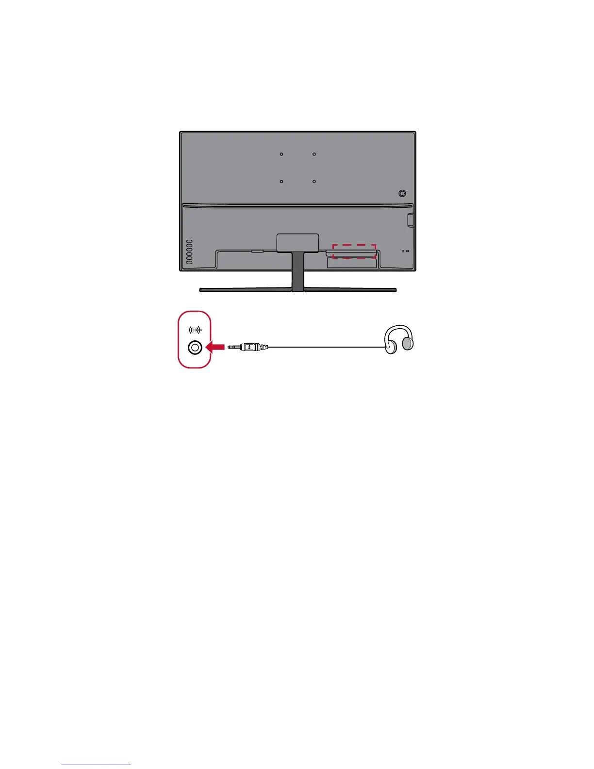 Plug the audio jack of the ear-/headphones into the Audio Out port of the monitor.