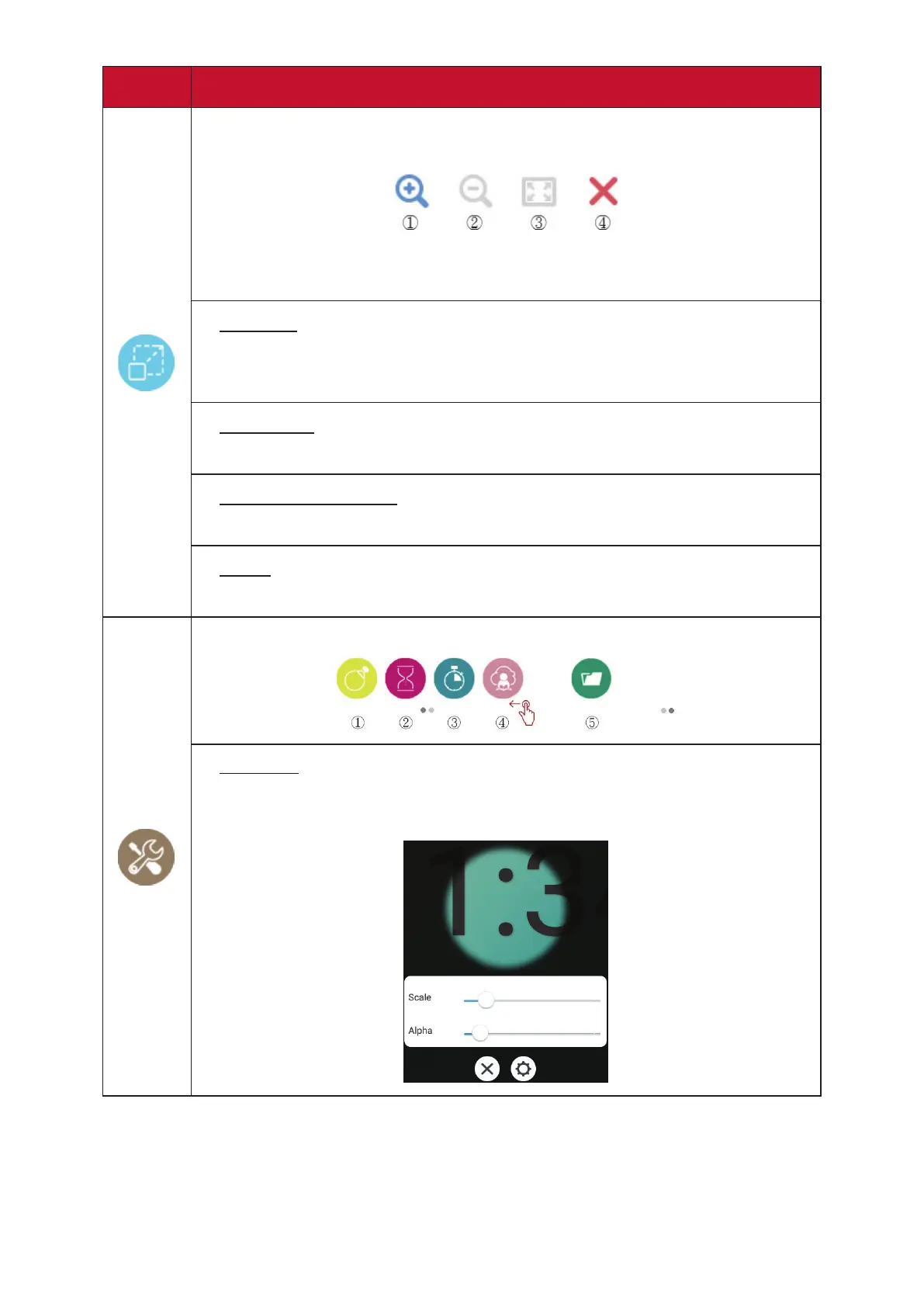 Highlight the focus content zone. Tap the Seng icon to adjust the