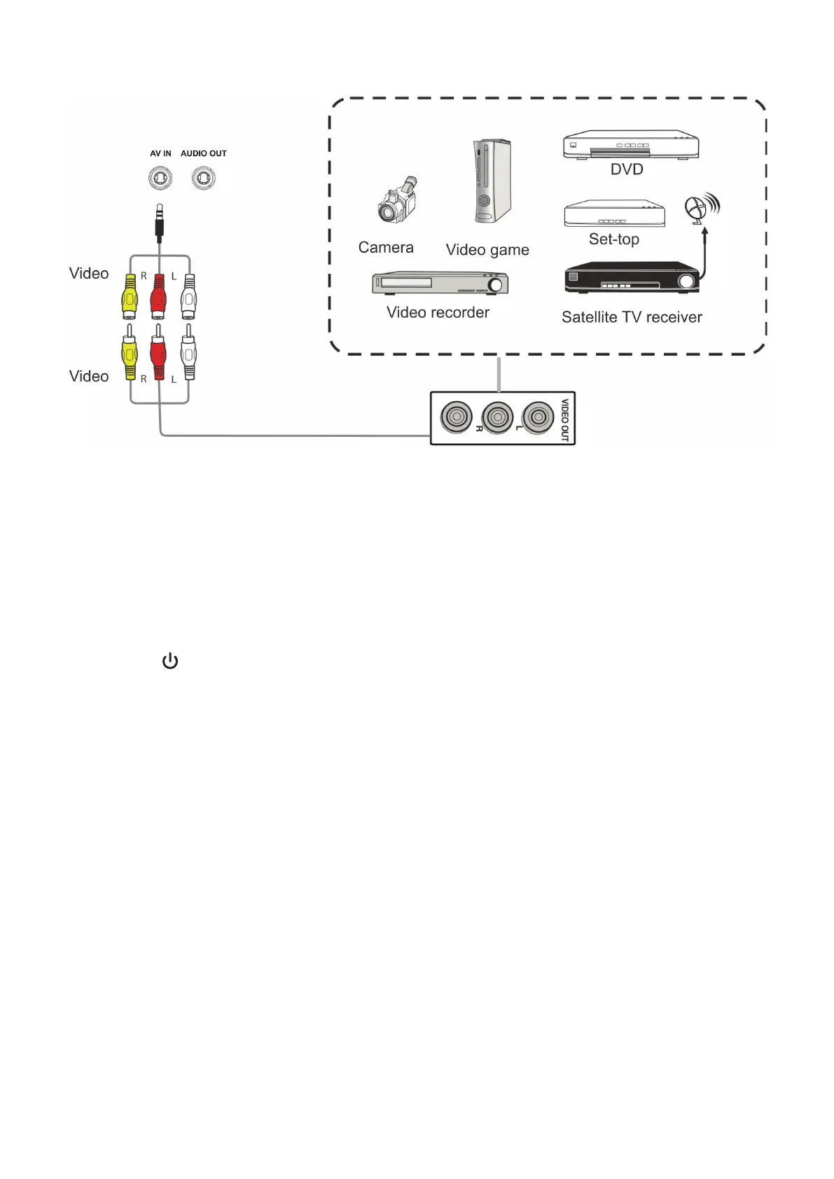 NOTE: On the AV cable: Yellow is Video, Red is Audio-R, White is Audio-L.