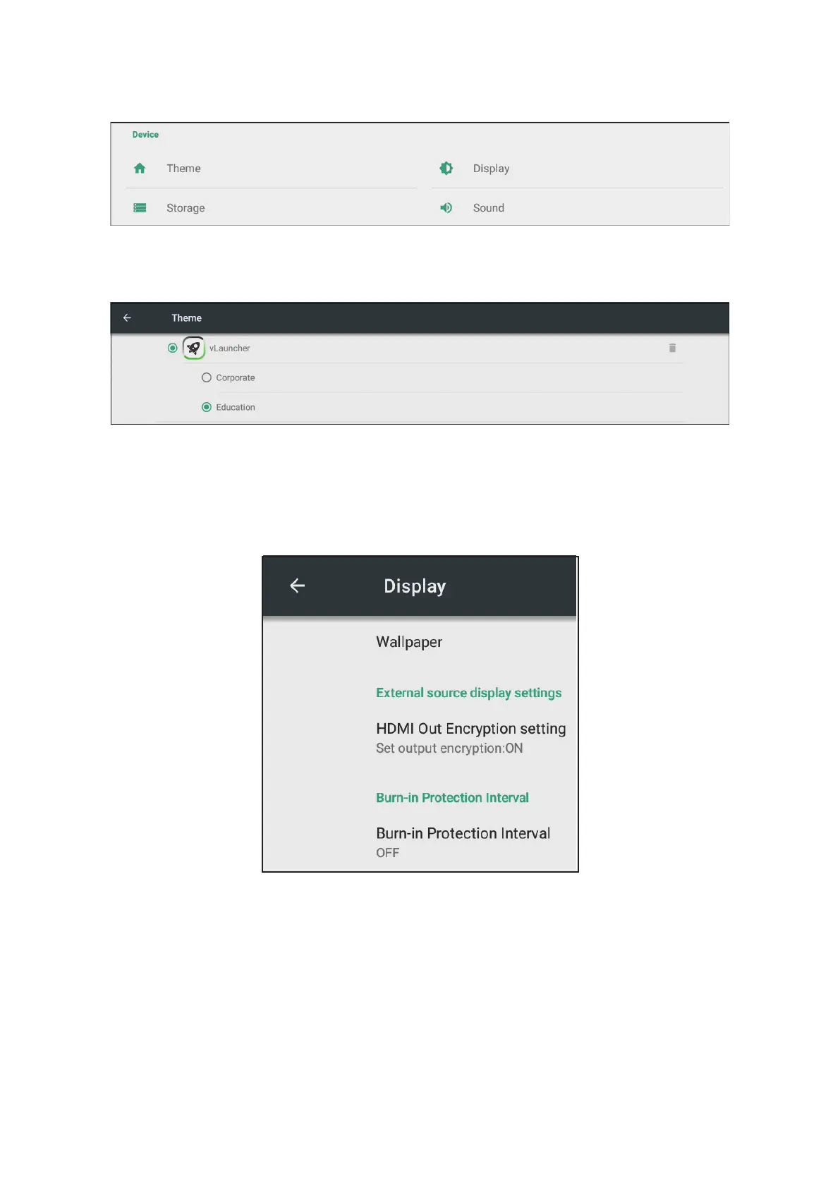 , HDMI Out Encrypon seng, and Burn-in Protecon In