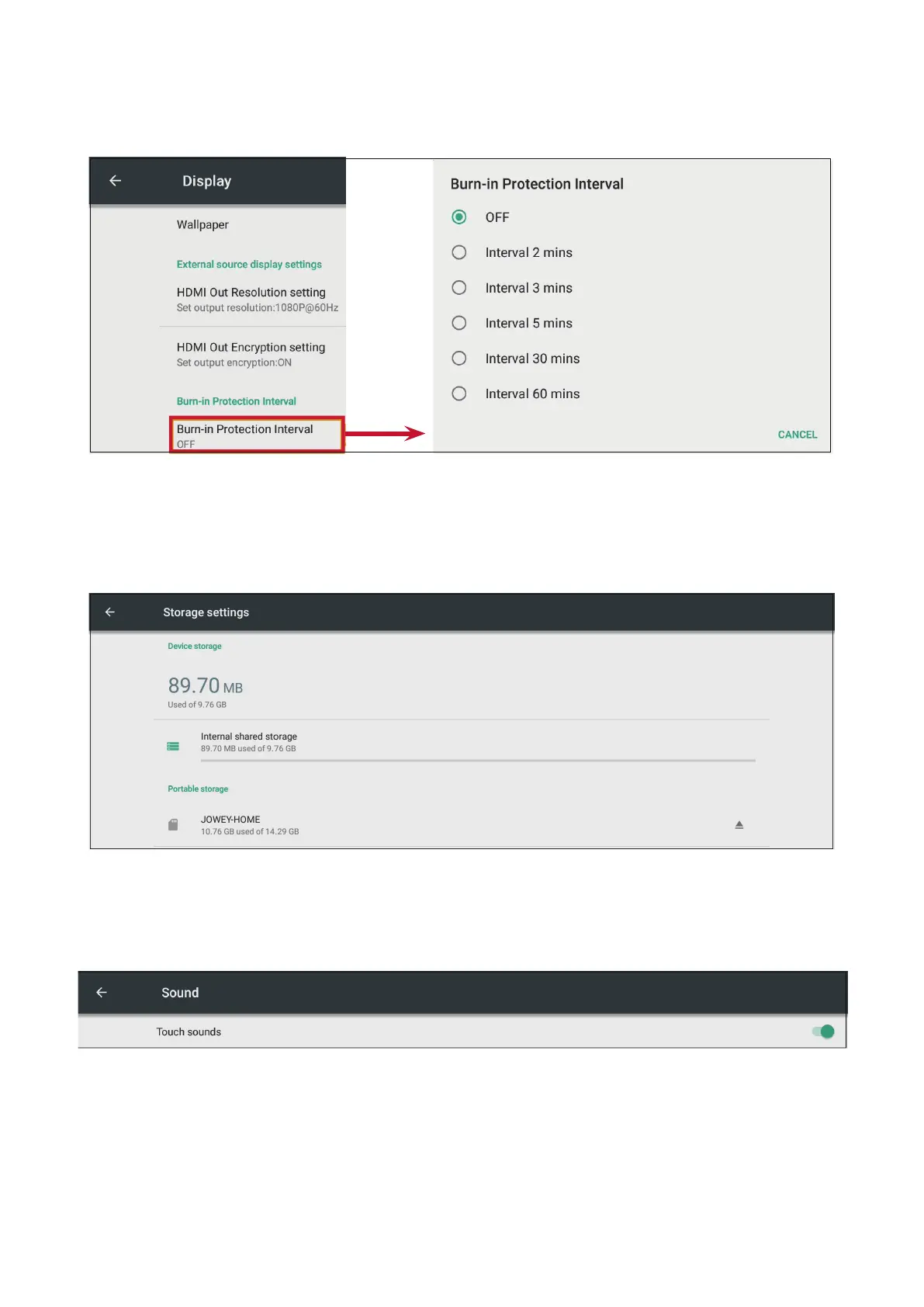 Users can enable or disable touch sounds.
