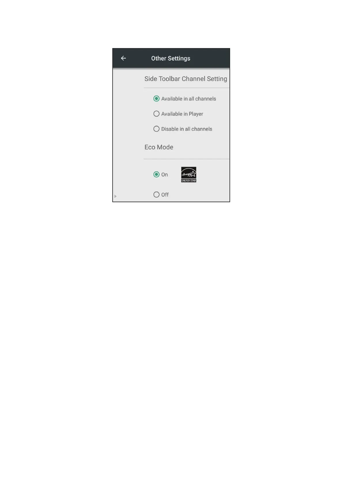 Adjust Side Toolbar Channel and Eco Mode sengs.