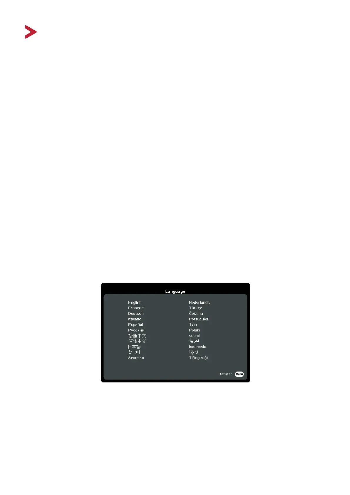 If the projector is activated for the first time, select your OSD language following