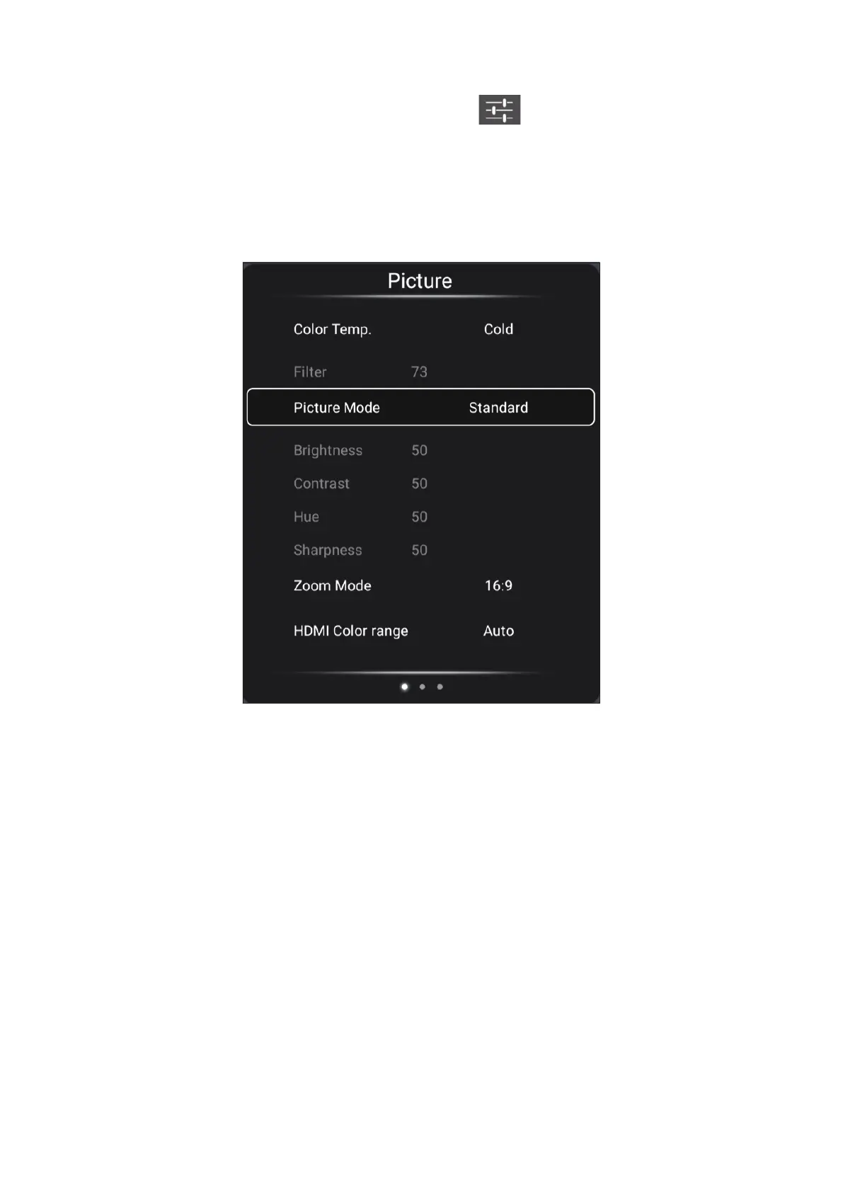 3. Adjust the Color Temperature, Filter, Picture Mode, Brightness, Contrast, Hue,