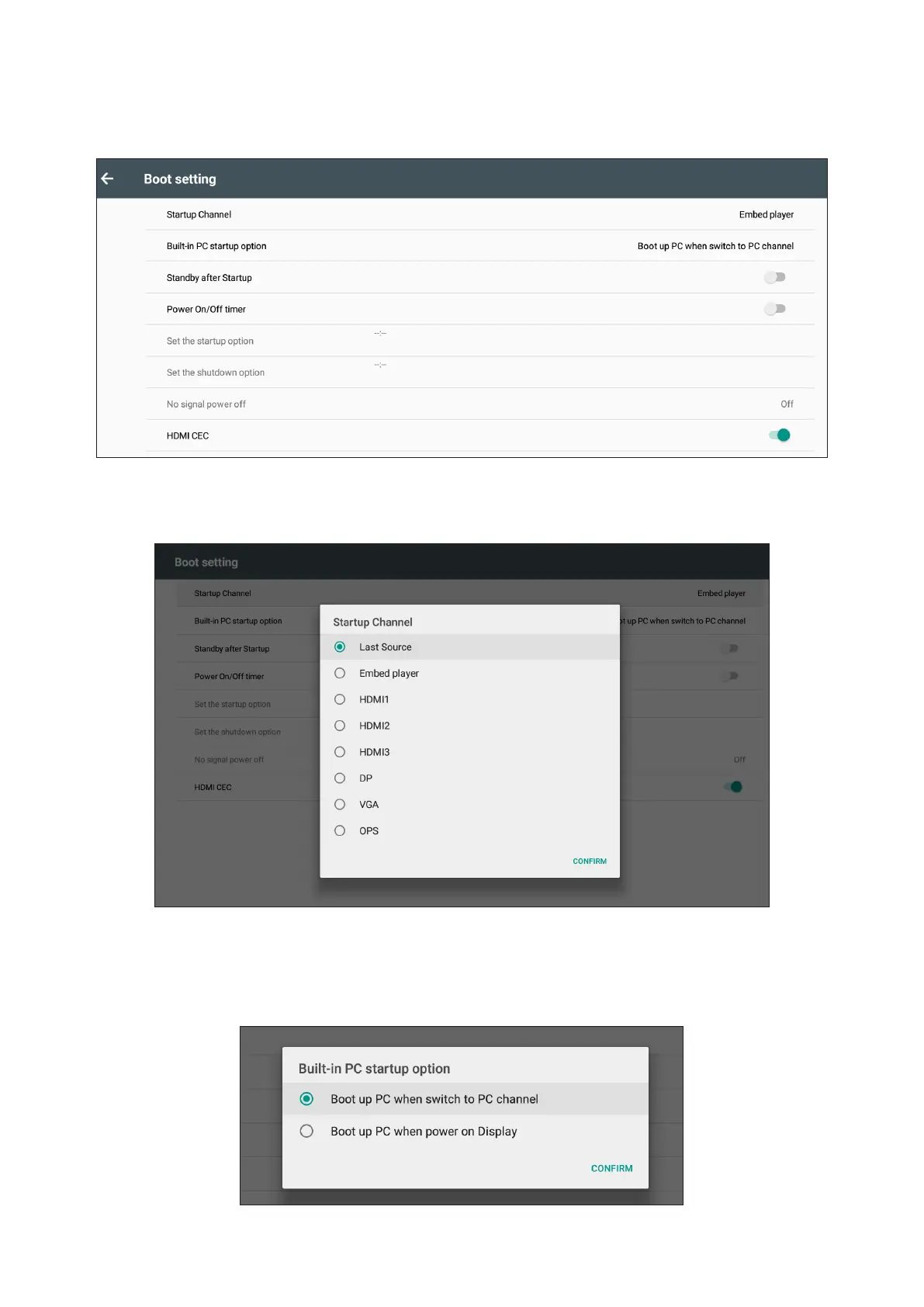 Set the boot up channel from the last shutdown channel or a specic source.