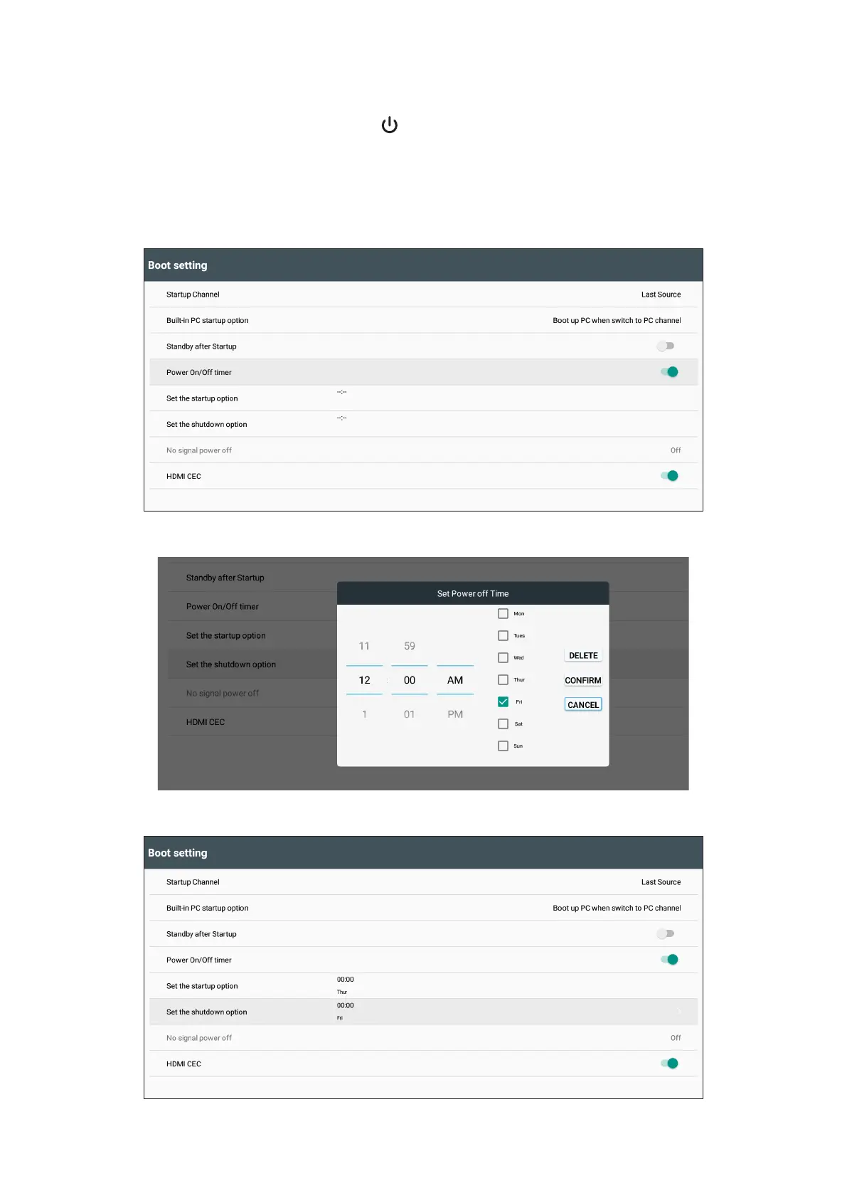1. Enable the feature by selecng “Power On/O mer”.