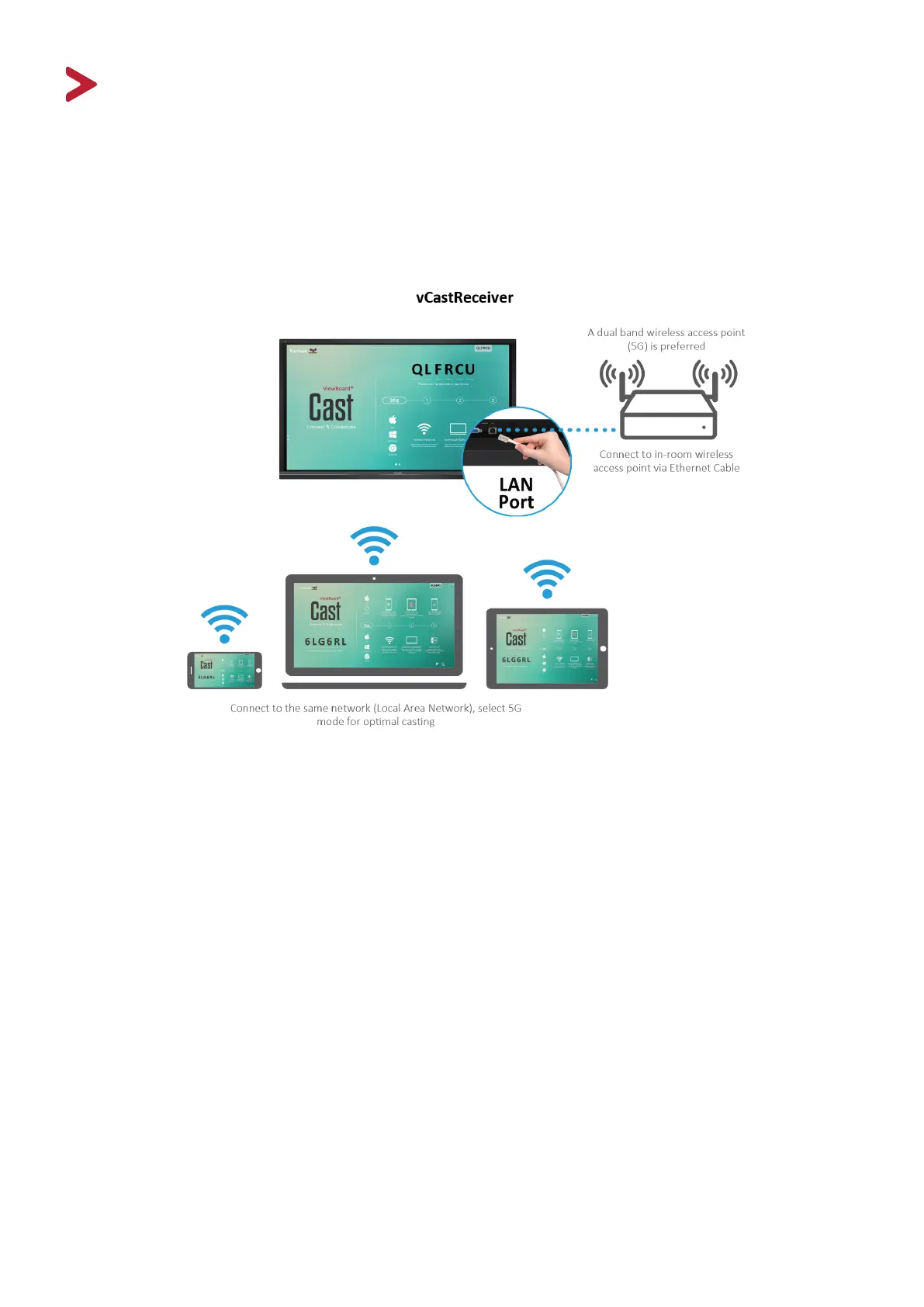 • CDE9800 Cast soware, laptops, and mobile devices can connect to both the