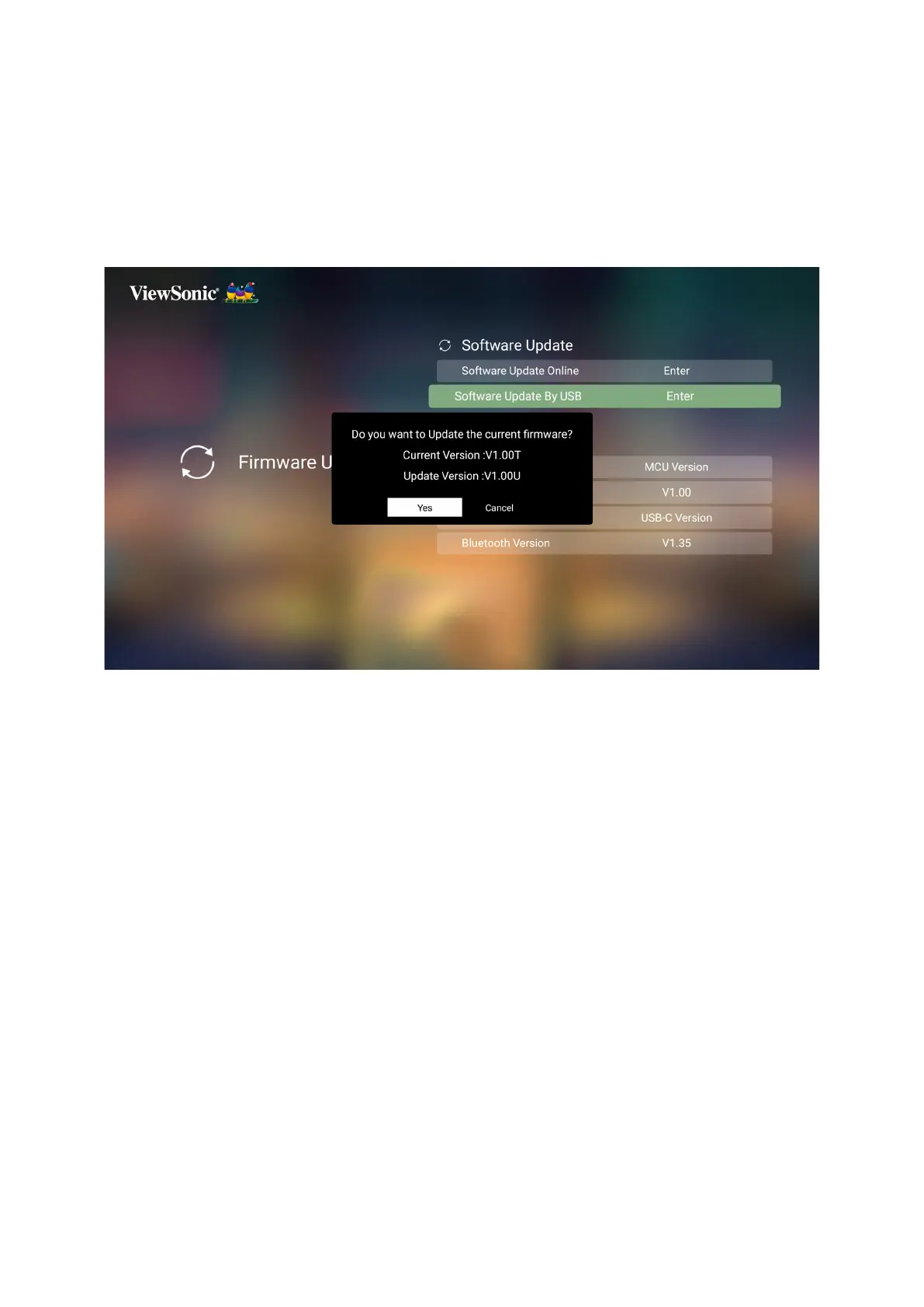 2. Plug the USB into the projector, then go to: Home > Seng > Firmware Upgrade