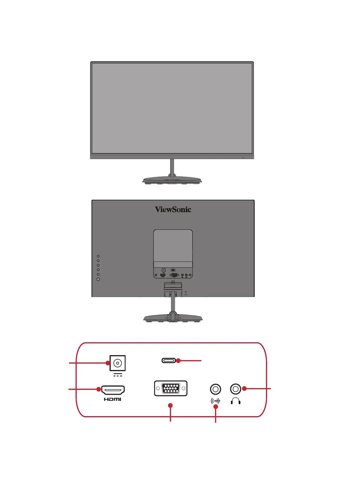 ViewSonic VS17885 - Product Overview - VX2485-mhu; Front and Rear View; I;O Ports