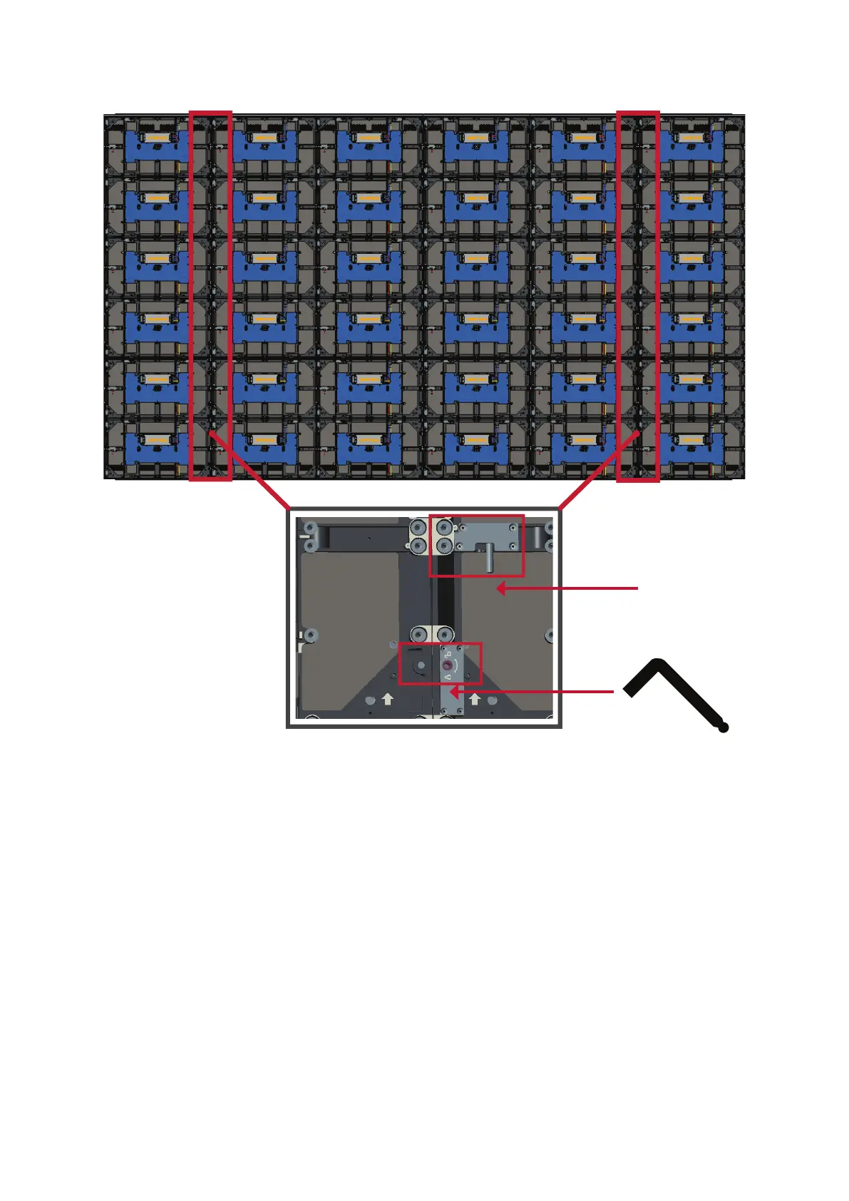 4. Push each Locking Bolt and lock each Hook with the hex tool to securely connect