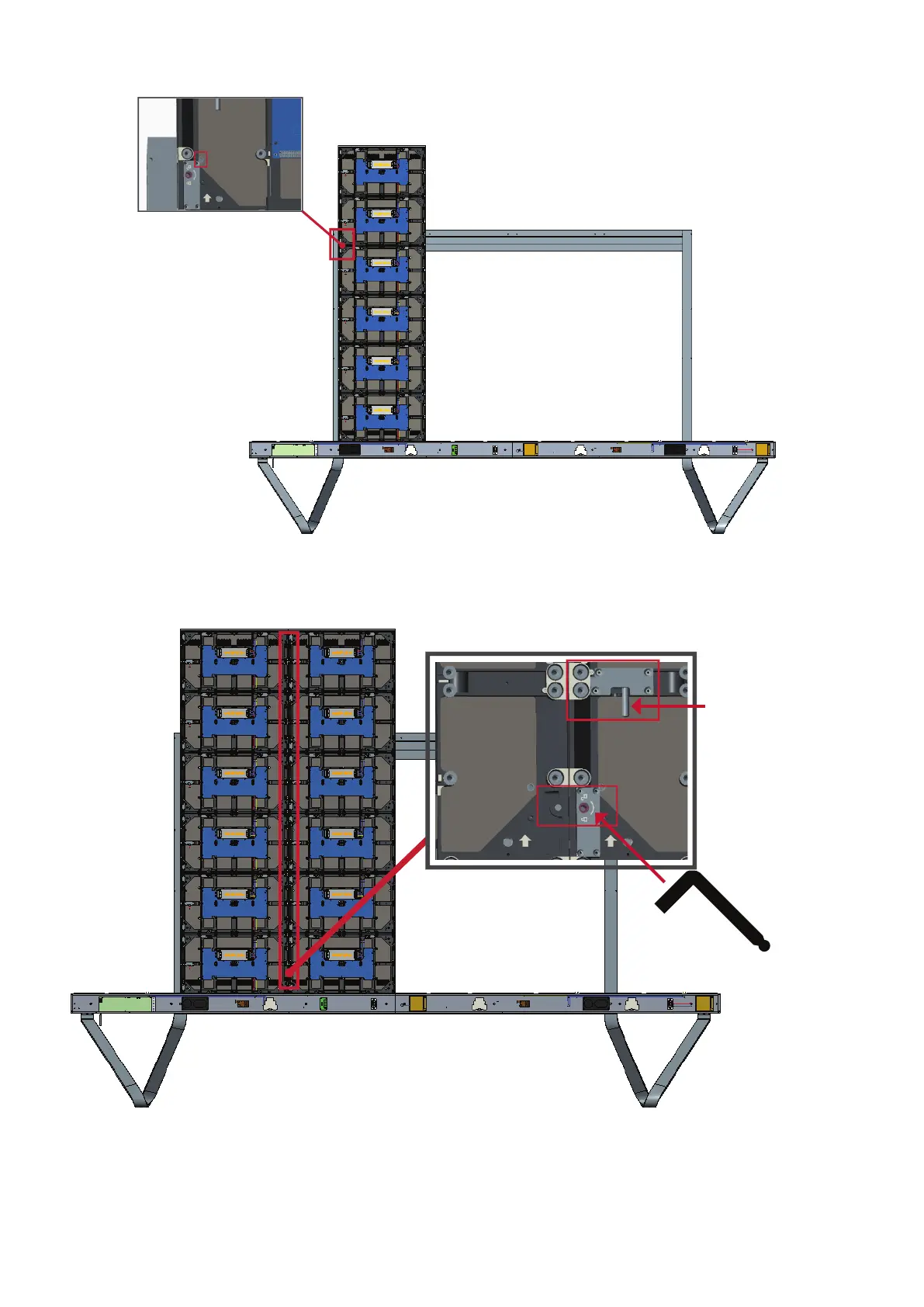 4. Push each Locking Bolt and lock each Hook with the hex tool to securely connect