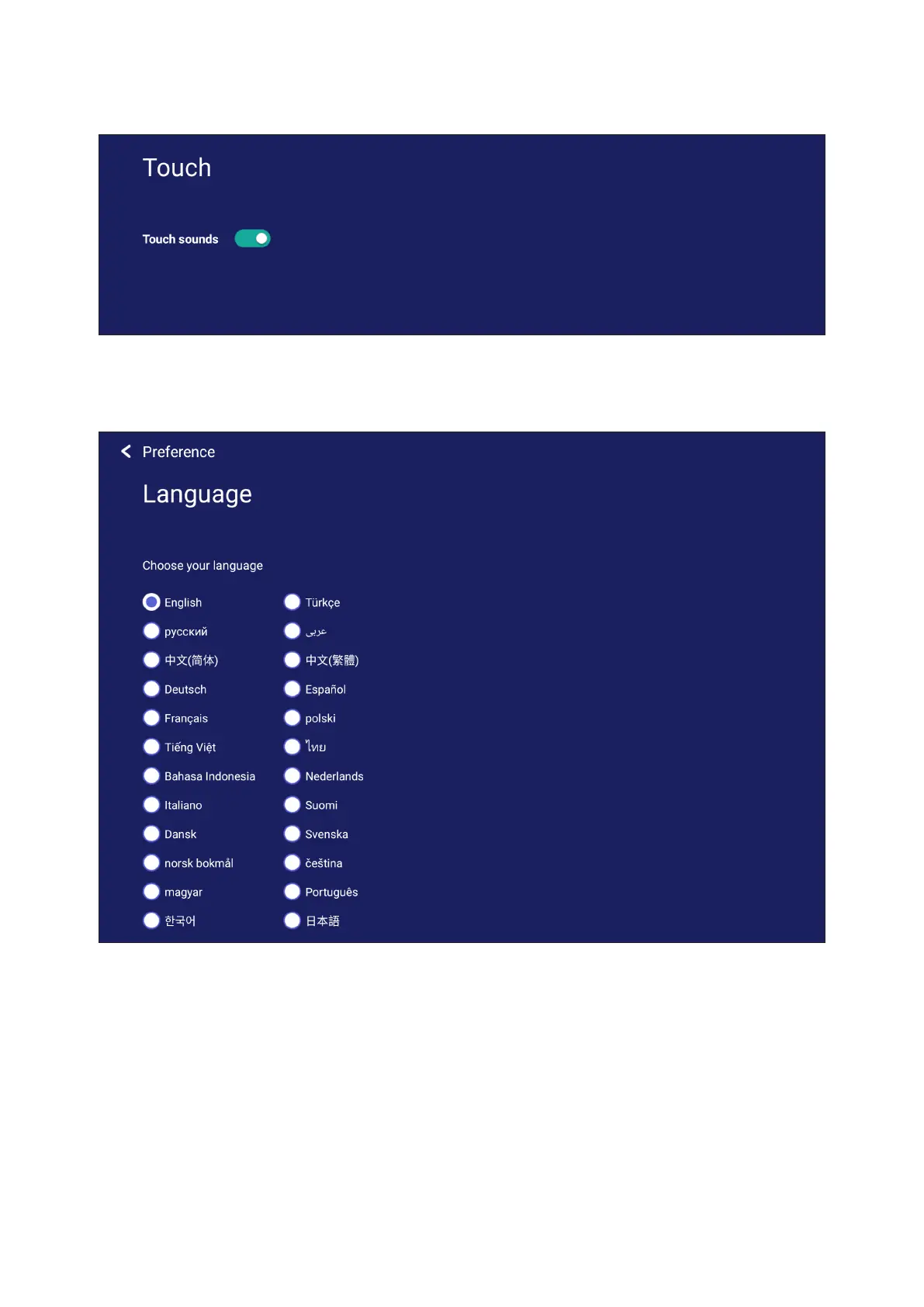 Adjust Touch Sengs and toggle Touch Sounds