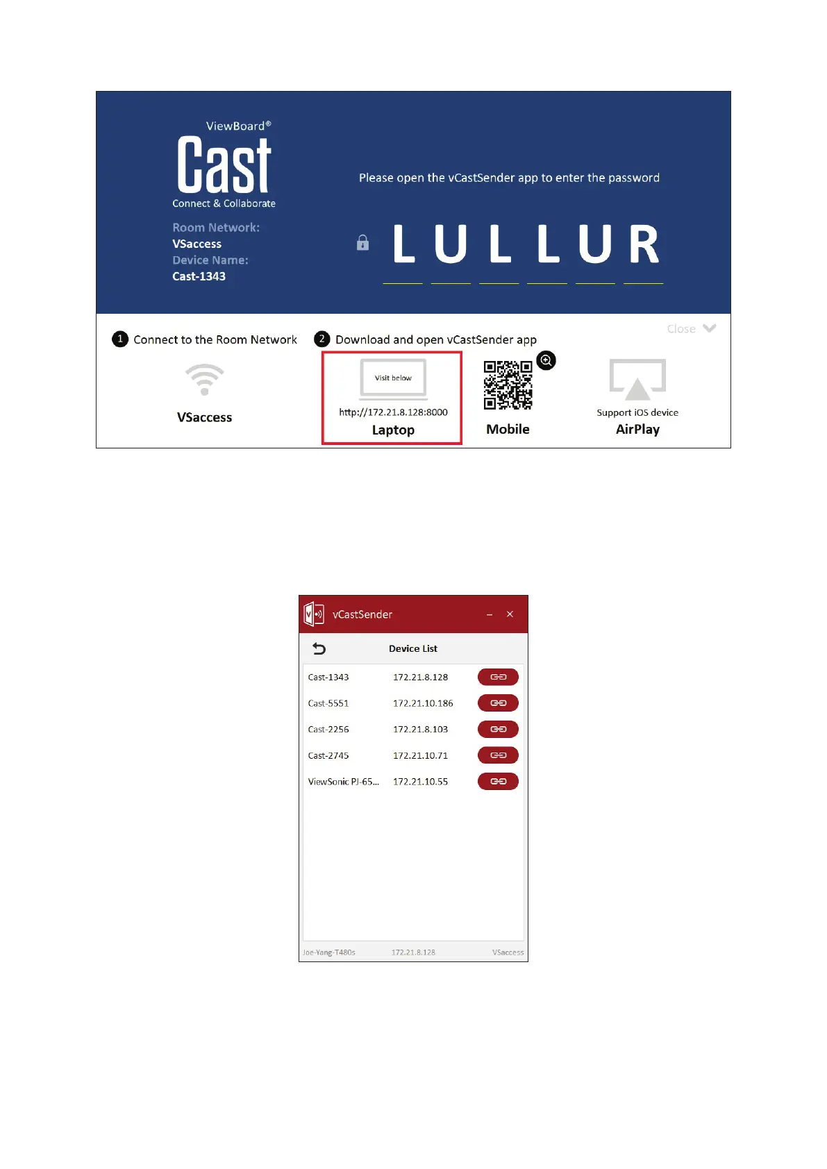 1. Make sure your device is connected to the same network as the ViewBoard.