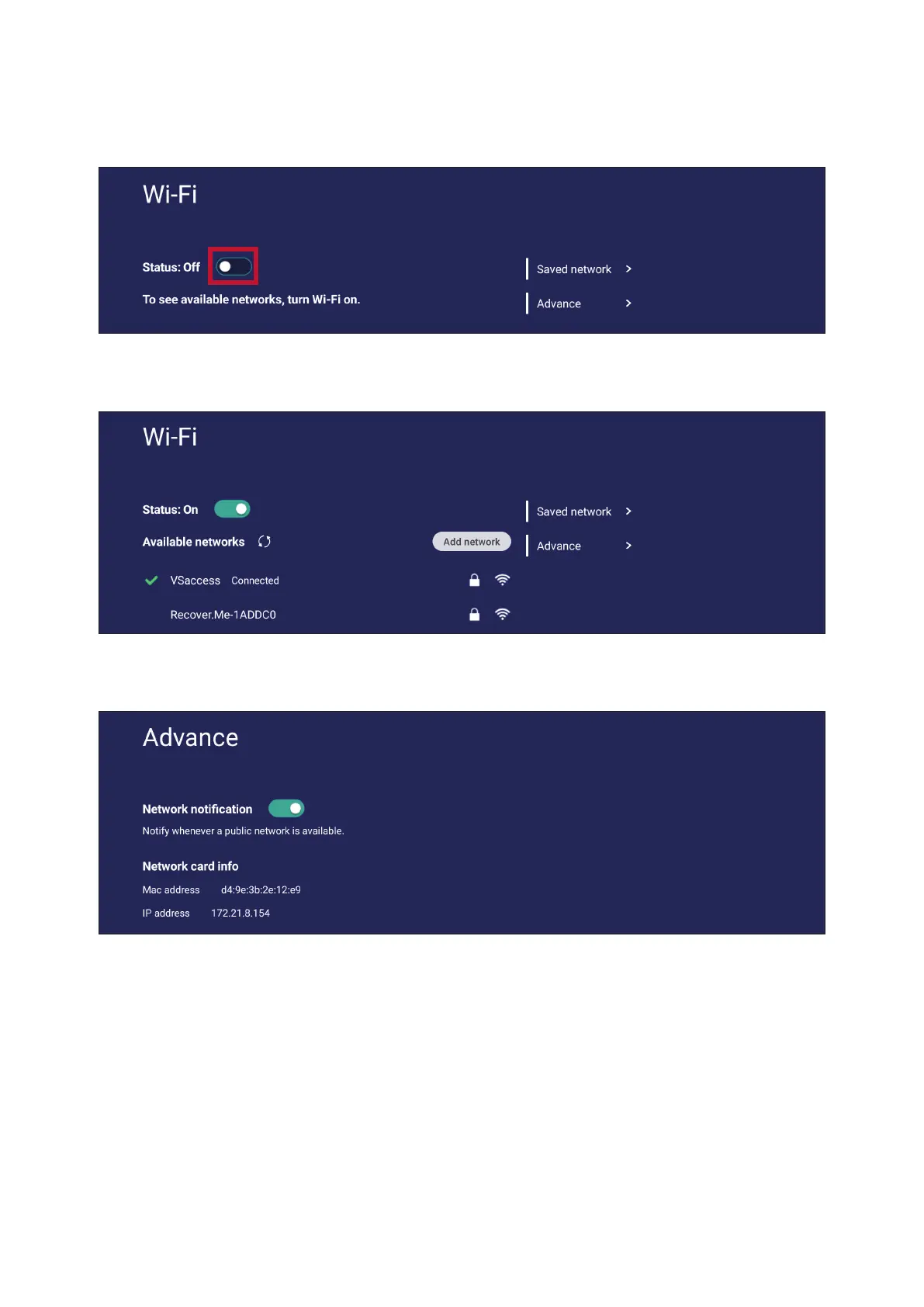 • Once On, you can: Add a Network, view Saved Networks, Refresh the network