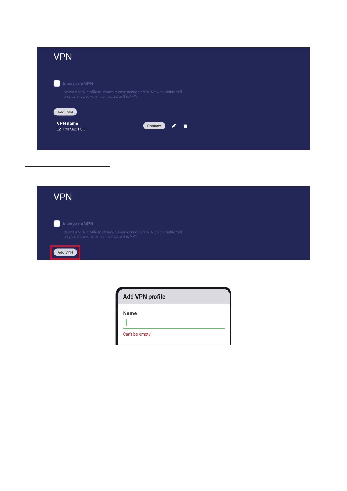 1. Go to: Sengs > Network & Internet > VPN and tap Add VPN.