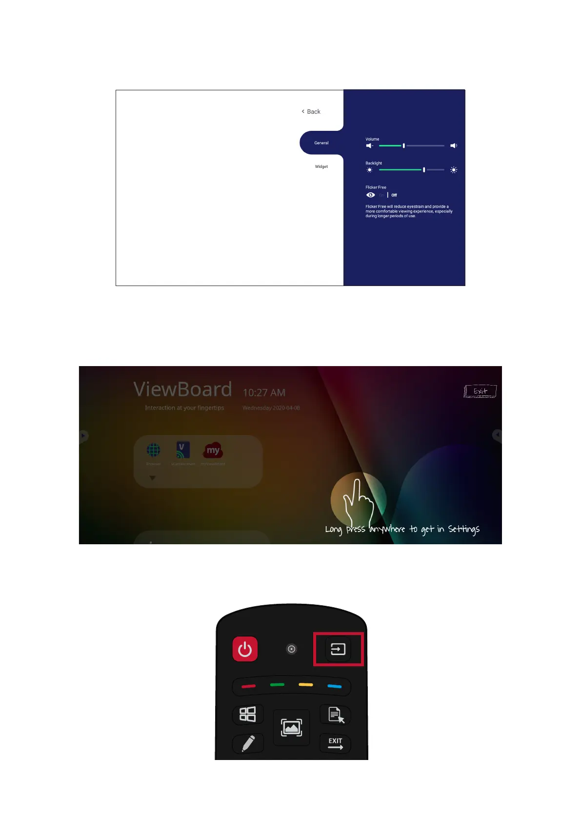 ViewBoard has two opons for opening the OSD Menu: