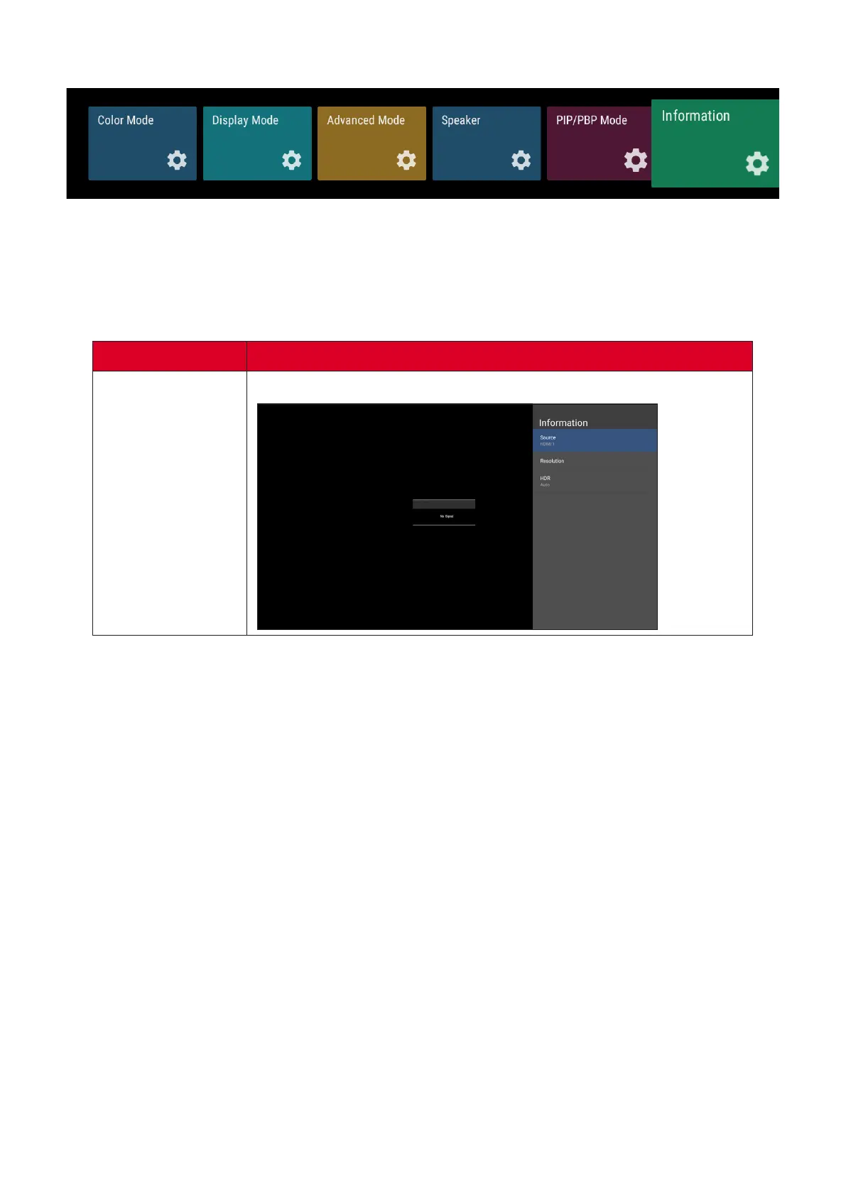View Input Source, Resoluon, and HDR informaon.