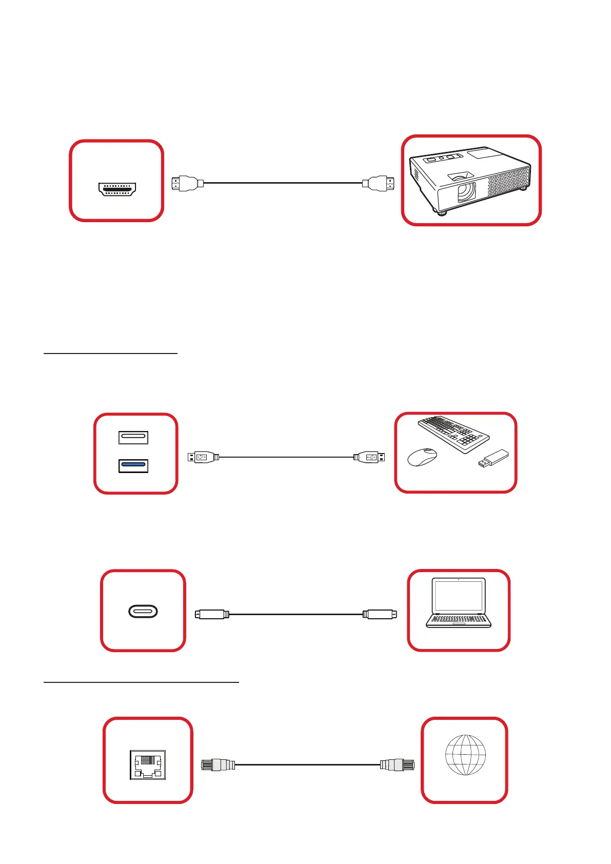 To output video via an external display device, connect an HDMI cable to the HDMI