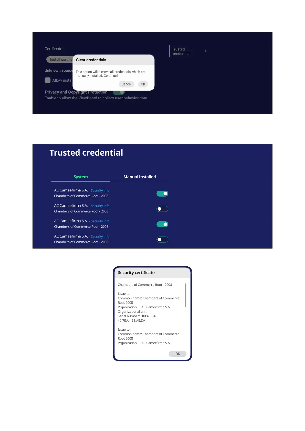 Under Trusted Credenals view and edit all trusted and installed CA cercates.