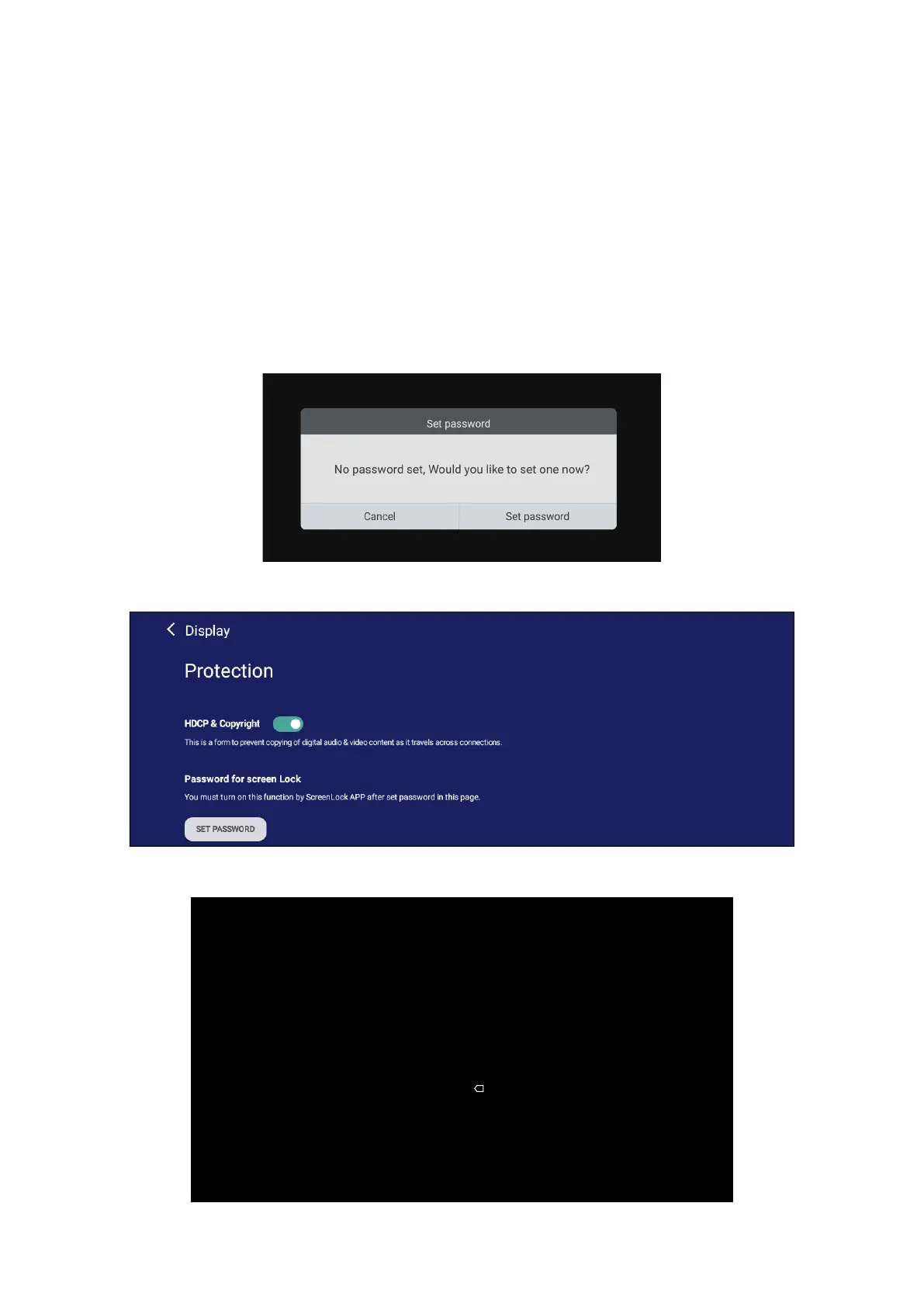 1. Go to: Sengs > Display > Password for screen lock, or select the Screen Lock