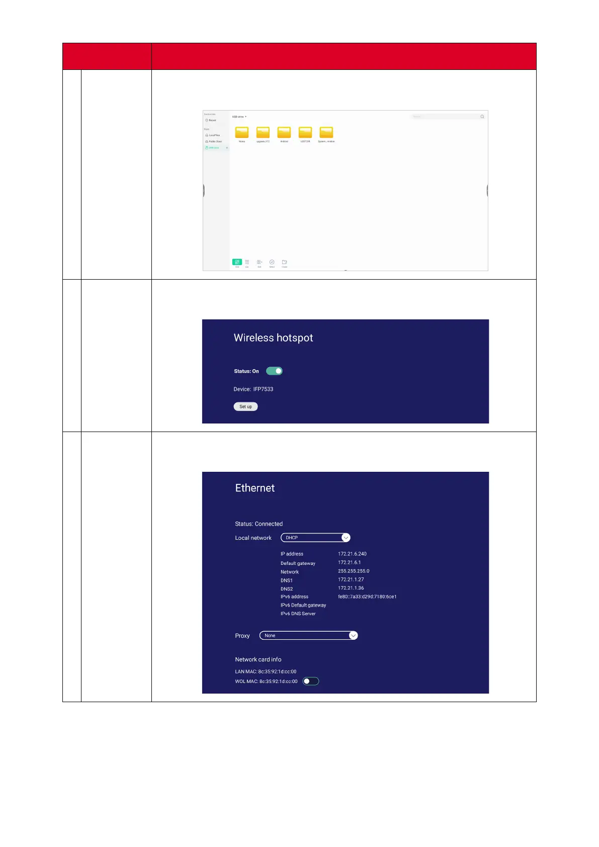 Shortcut to Wireless & Network LAN sengs. Enable or disable LAN