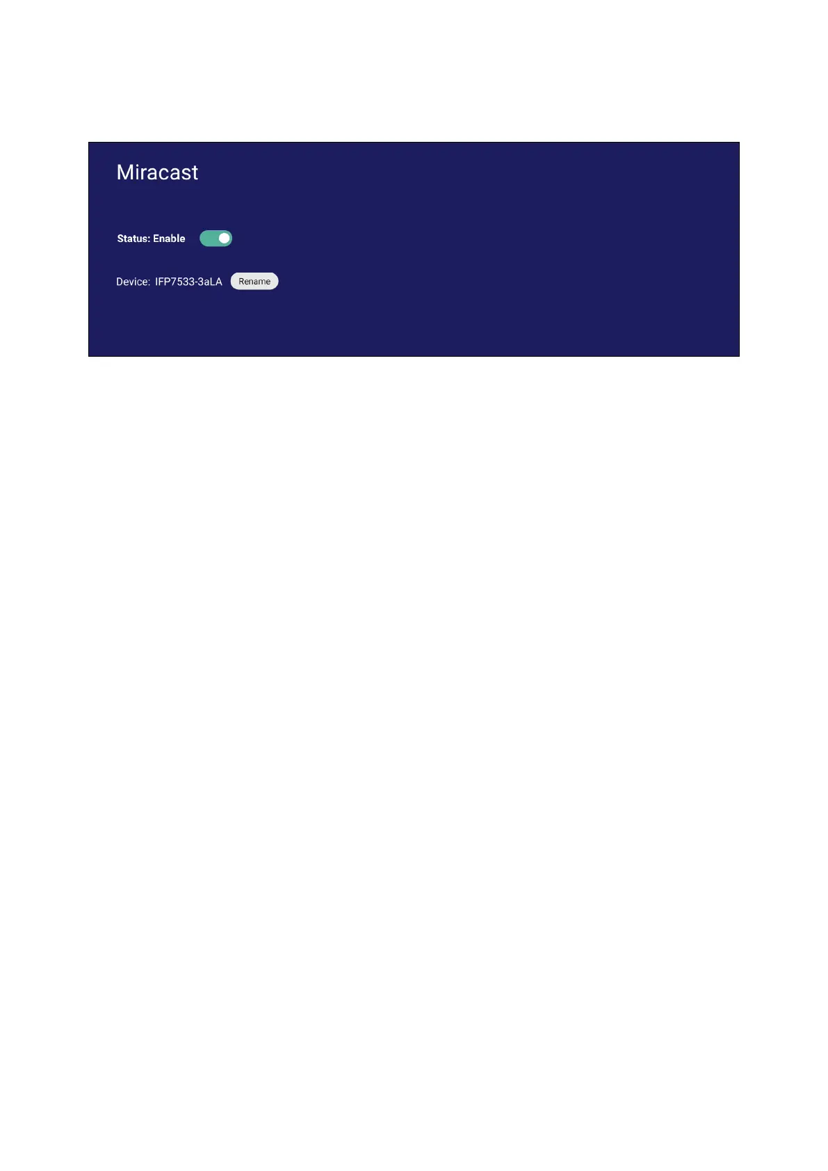 Enable/disable Miracast. Miracast allows for wireless sharing of mulmedia and