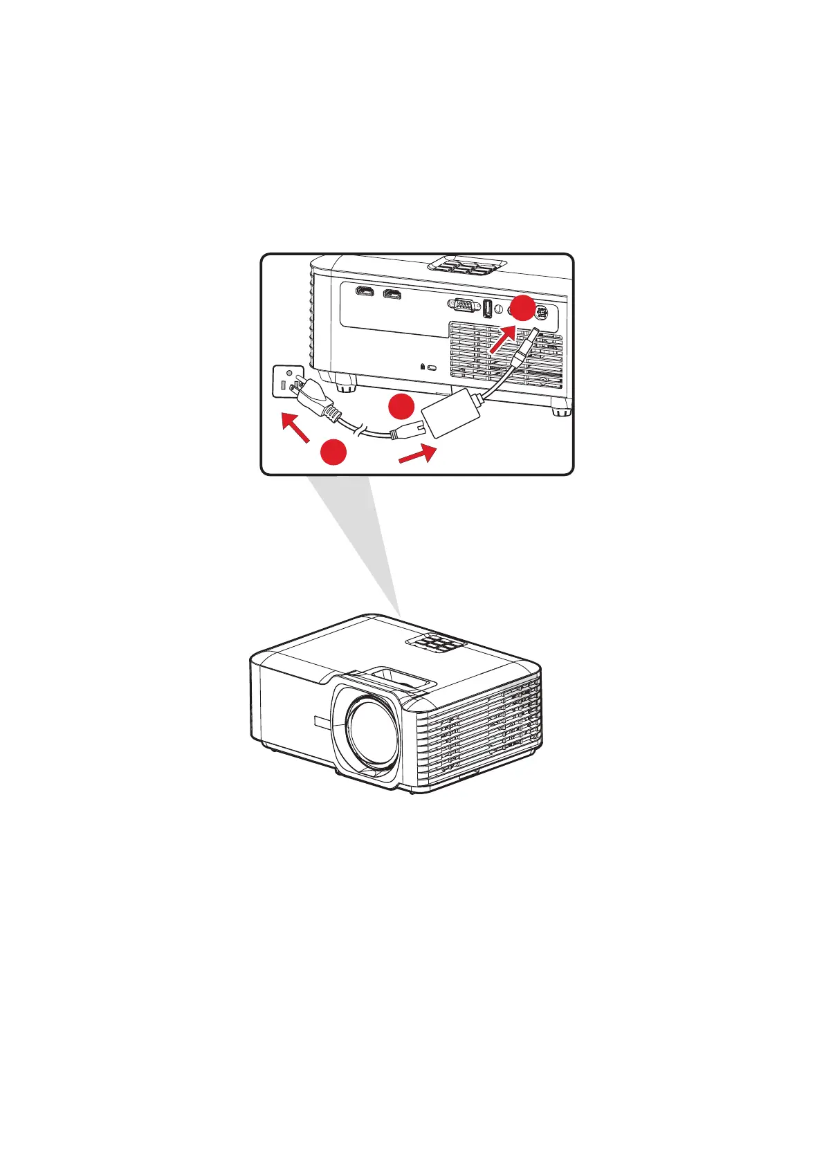 2. Connect the power adapter to the DC IN jack at the rear of the projector.