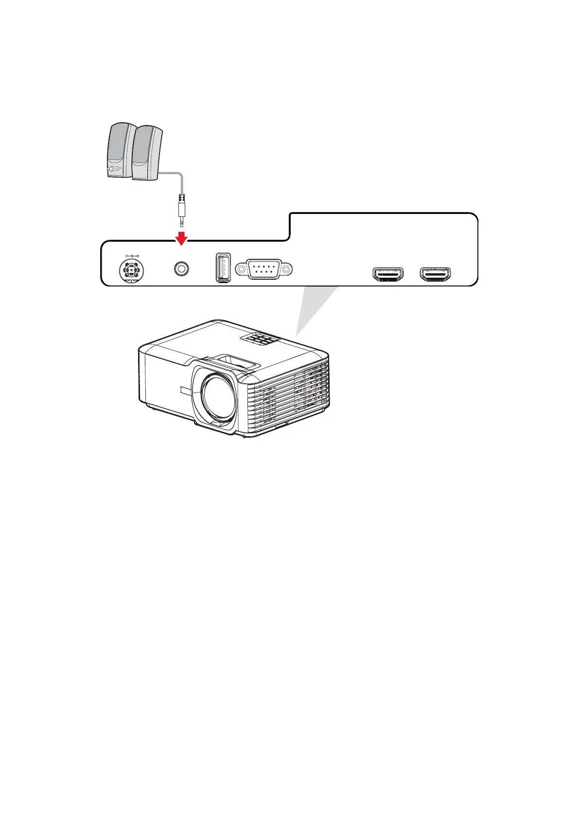 an audio cable to the external speaker, and the other end to the projectors AUDIO