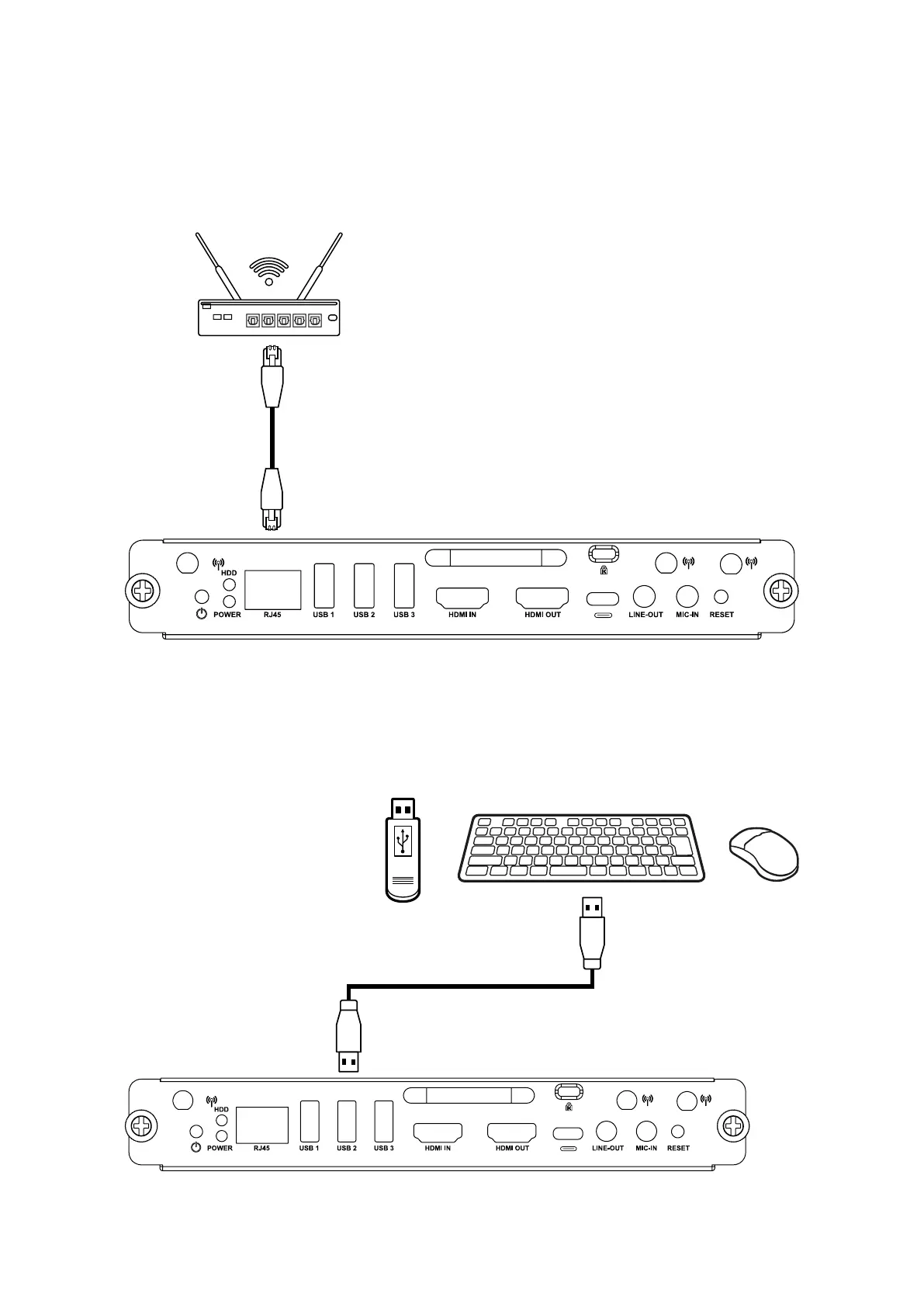 USB peripherals such as keyboards, mice, storage devices, etc. can be connected to