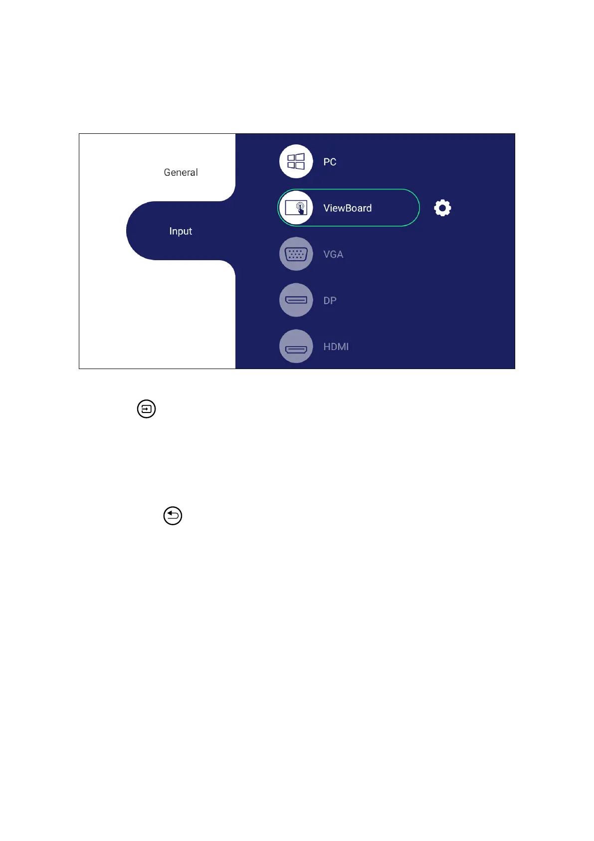 3. Press OK/ENTER on the remote control, or touch the input source directly.
