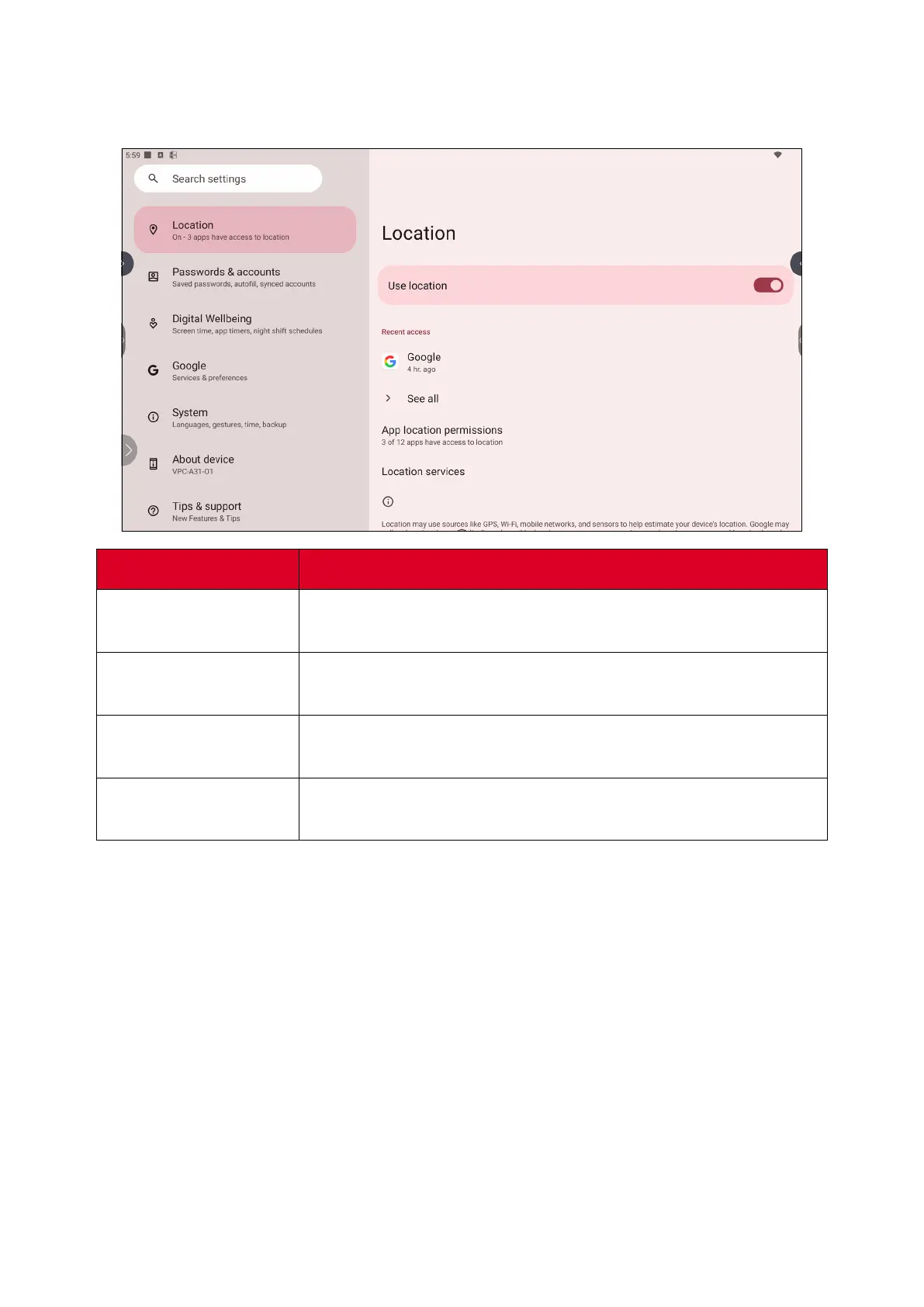 View and manage locaon sengs.