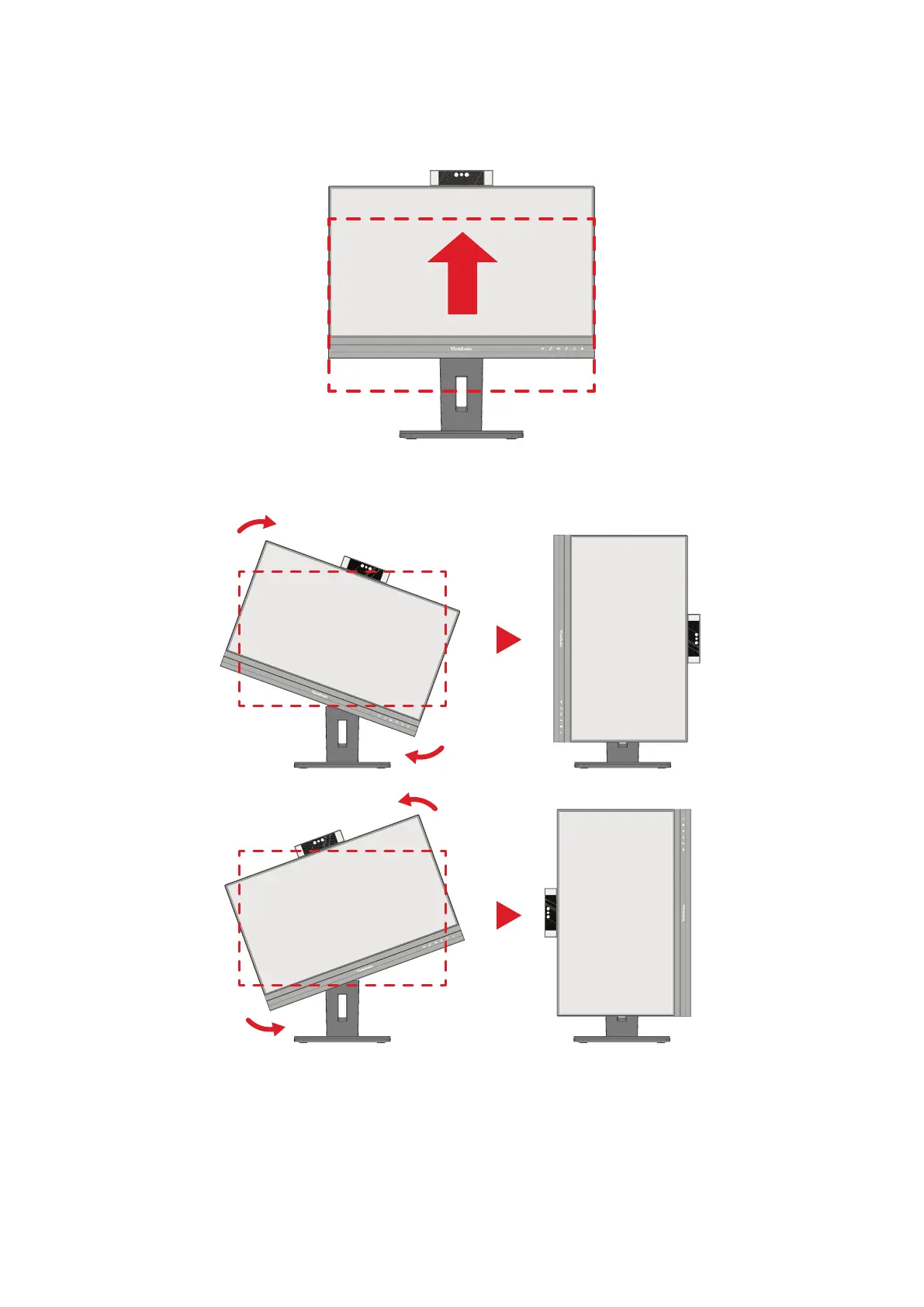 2. Rotate the monitor 90° clockwise or counter clockwise from landscape to portrait