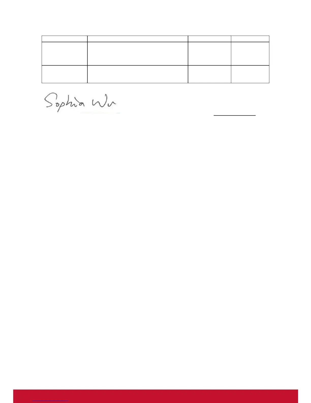 Sophia Wu, Compliance Manager Date