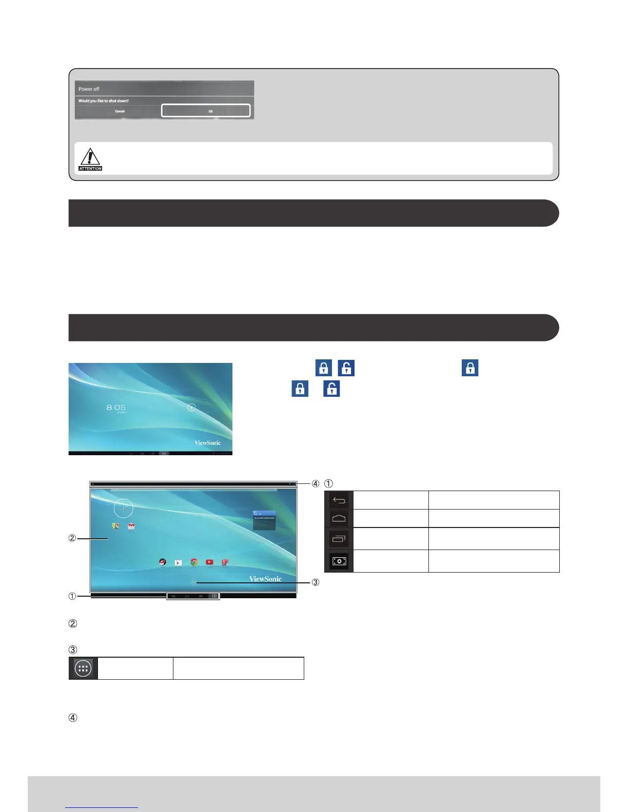 If the power button is pressed shortly, the screen shuts off and goes into power saving mode.