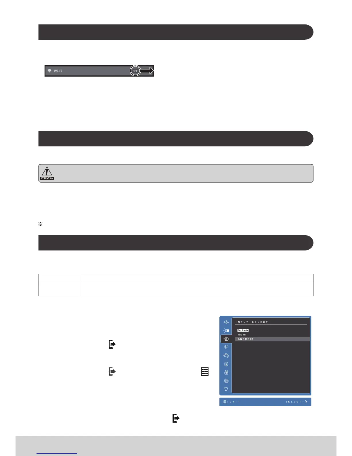 1) The INPUT SELECT OSD window will close after 15 sec.