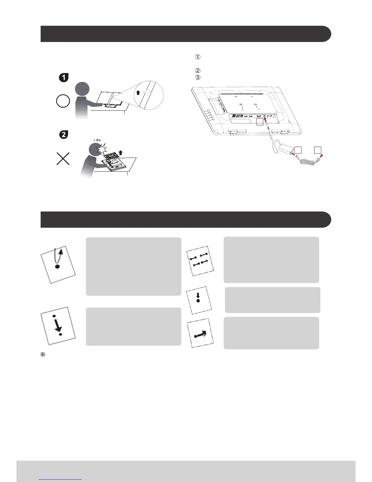 1) 按箭头方向打开支架。