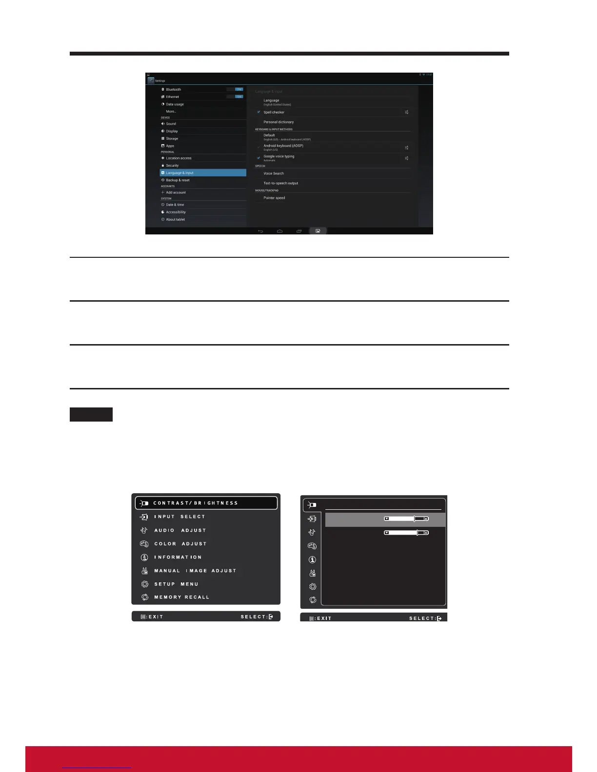 congure the Contrast/Brightness, Input Select, Audio Adjust, Color Adjust,