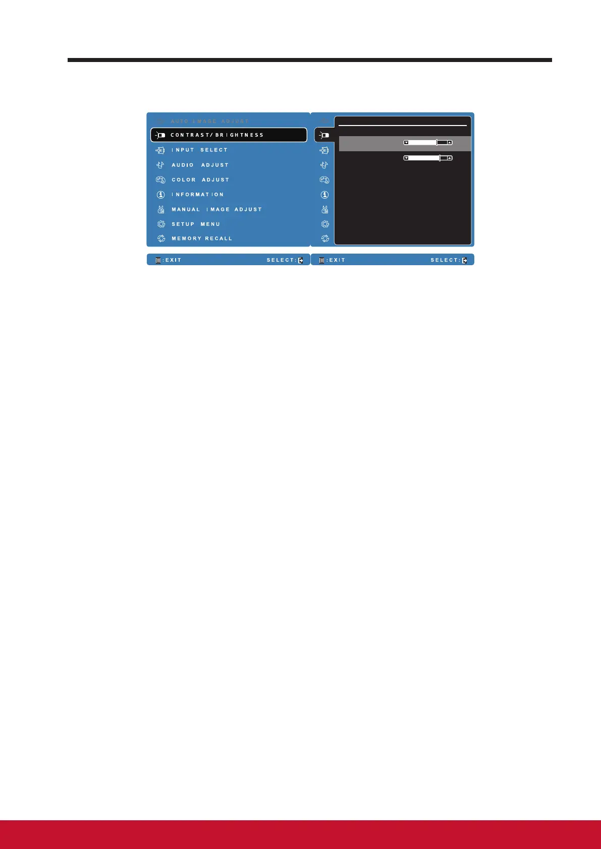 Contraste : Sélectionnez et déplacez le curseur de délement sur la barre