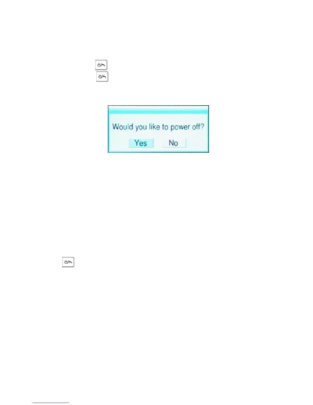 Power Off: Press button and hold for 3 seconds, the system will pop up