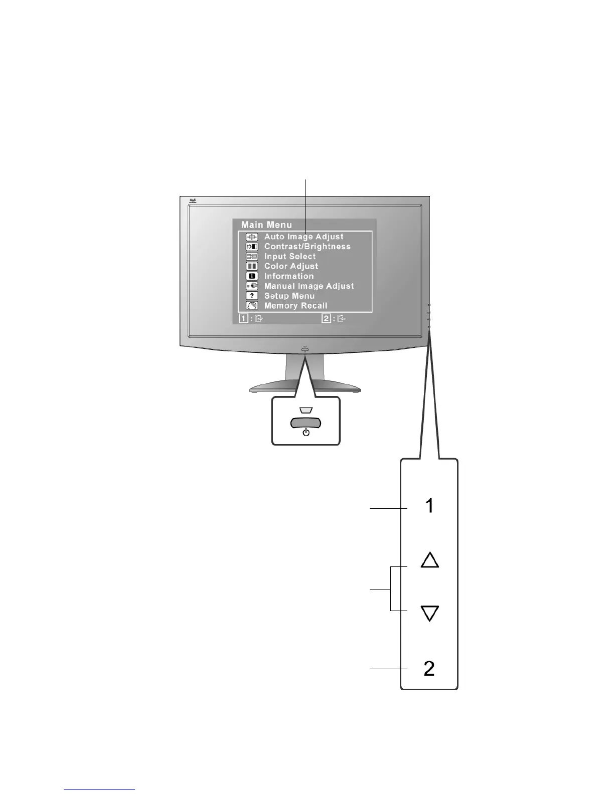 on the screen. The OSD controls are explained at the top of the next page and are defined in