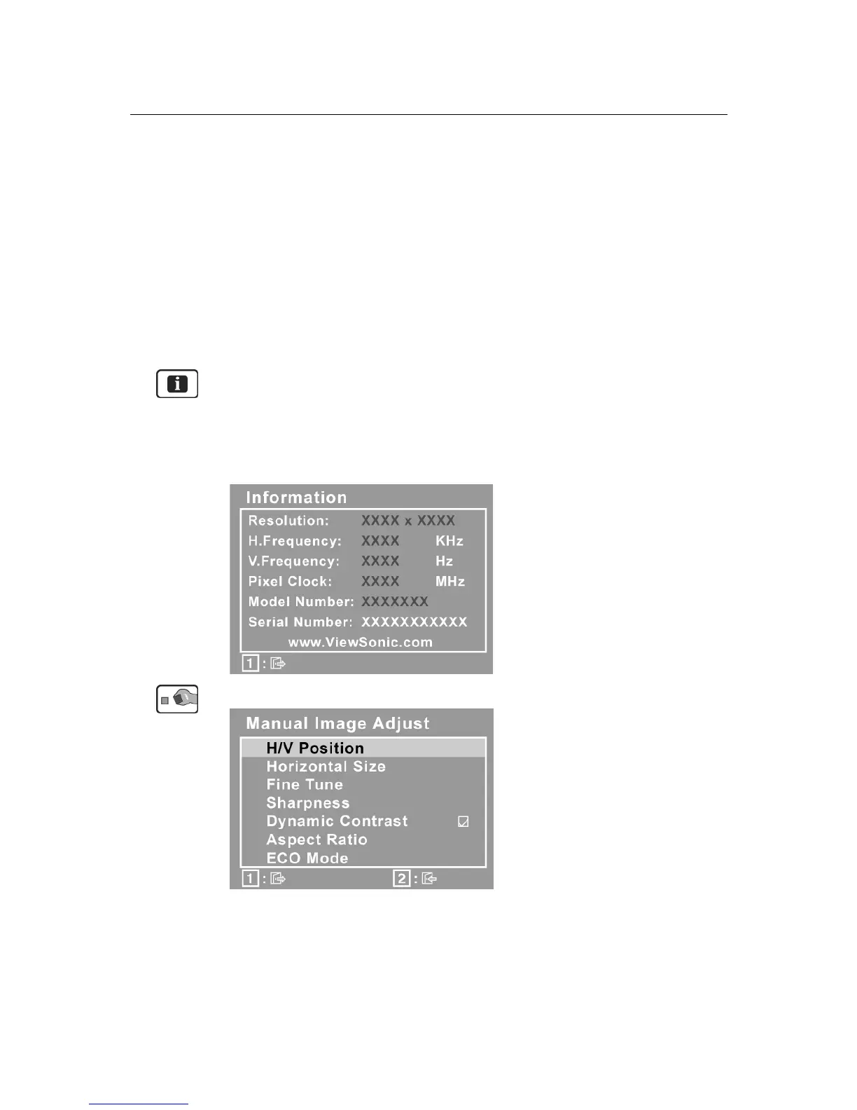 Manual Image Adjust displays the Manual Image Adjust menu.
