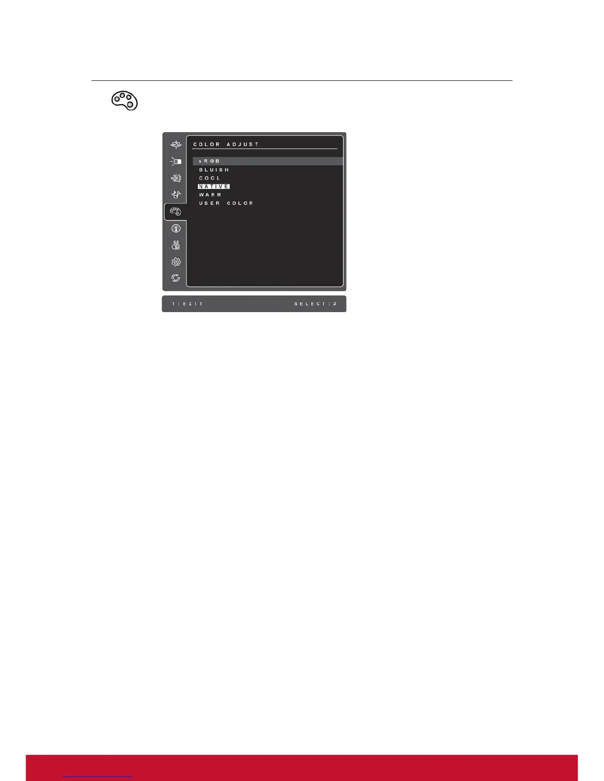 User Color!Individual adjustments for red (R), green (G),!and blue (B).