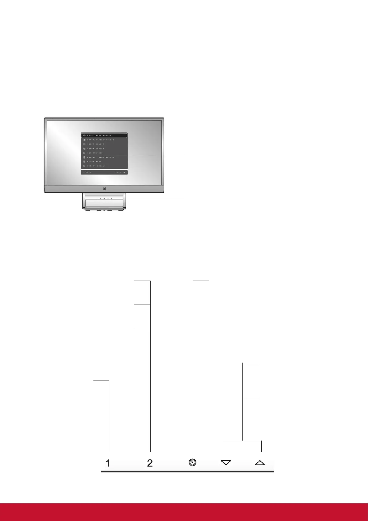 on the screen. The OSD controls are explained at the top of the next page and are defined in