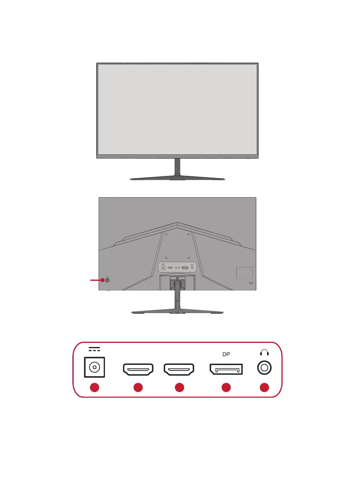 1. DC IN 2. HDMI 3. DisplayPort 4. Audio Out