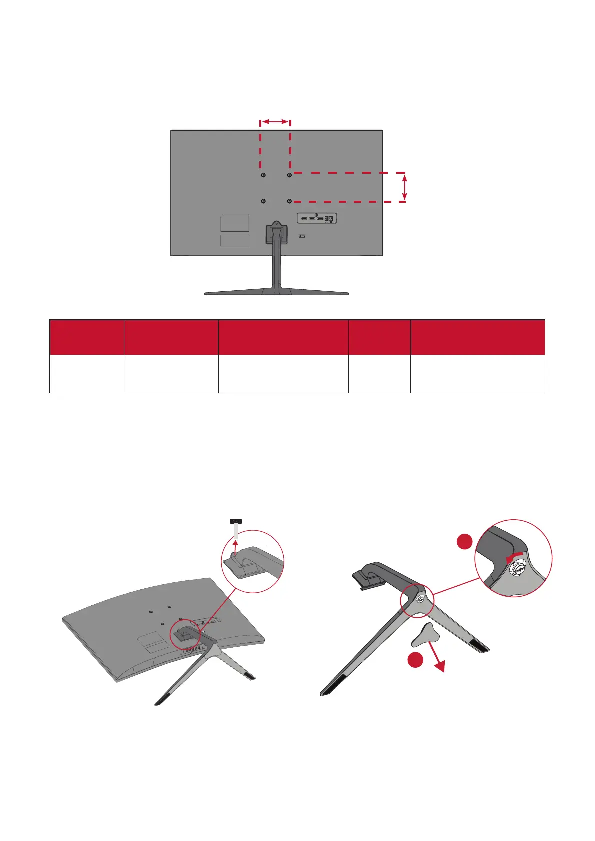 4. Aach the mounng bracket to the VESA mounng holes at the rear of the