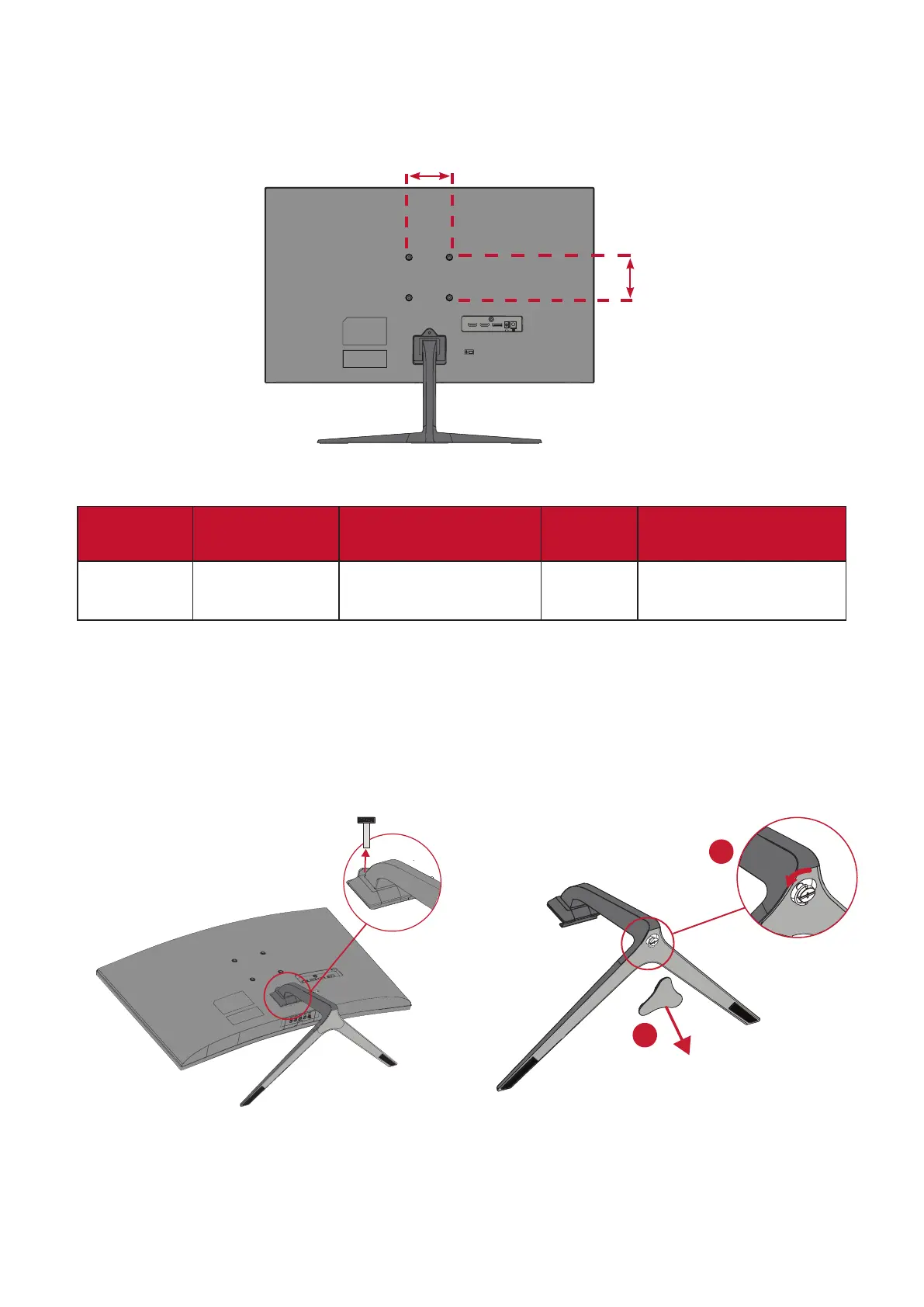 4. Aach the mounng bracket to the VESA mounng holes at the rear of the